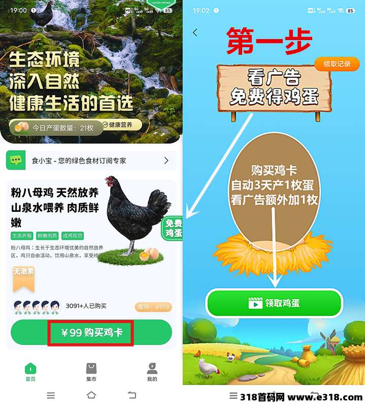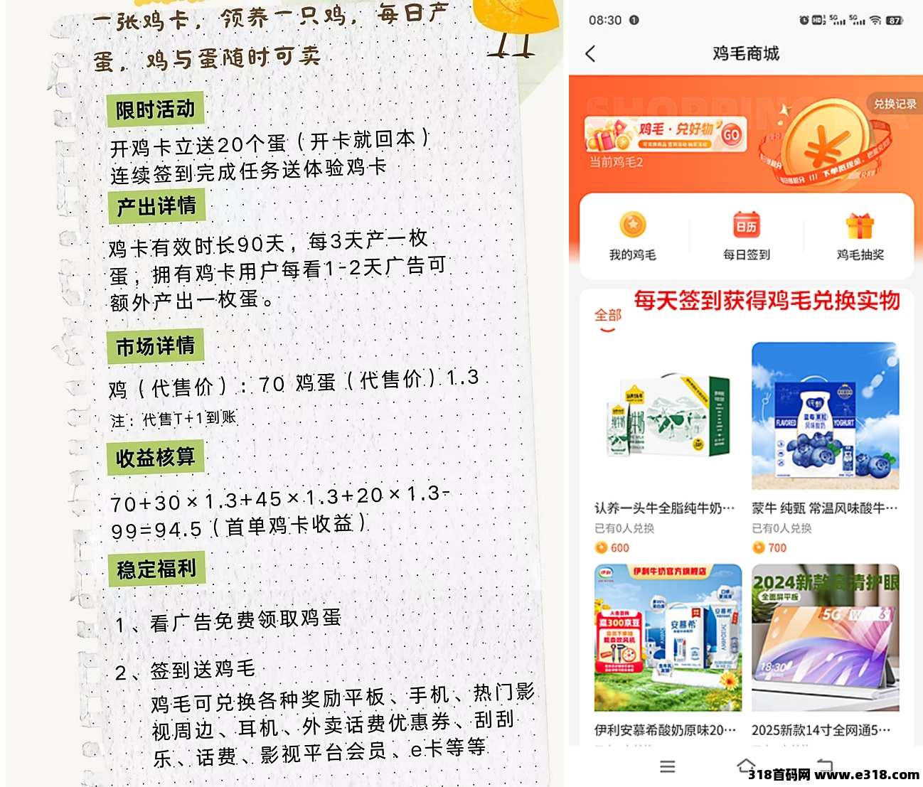 二、开通鸡卡产自动产鸡蛋,不看广告3天产1枚,看广告额外产出1枚