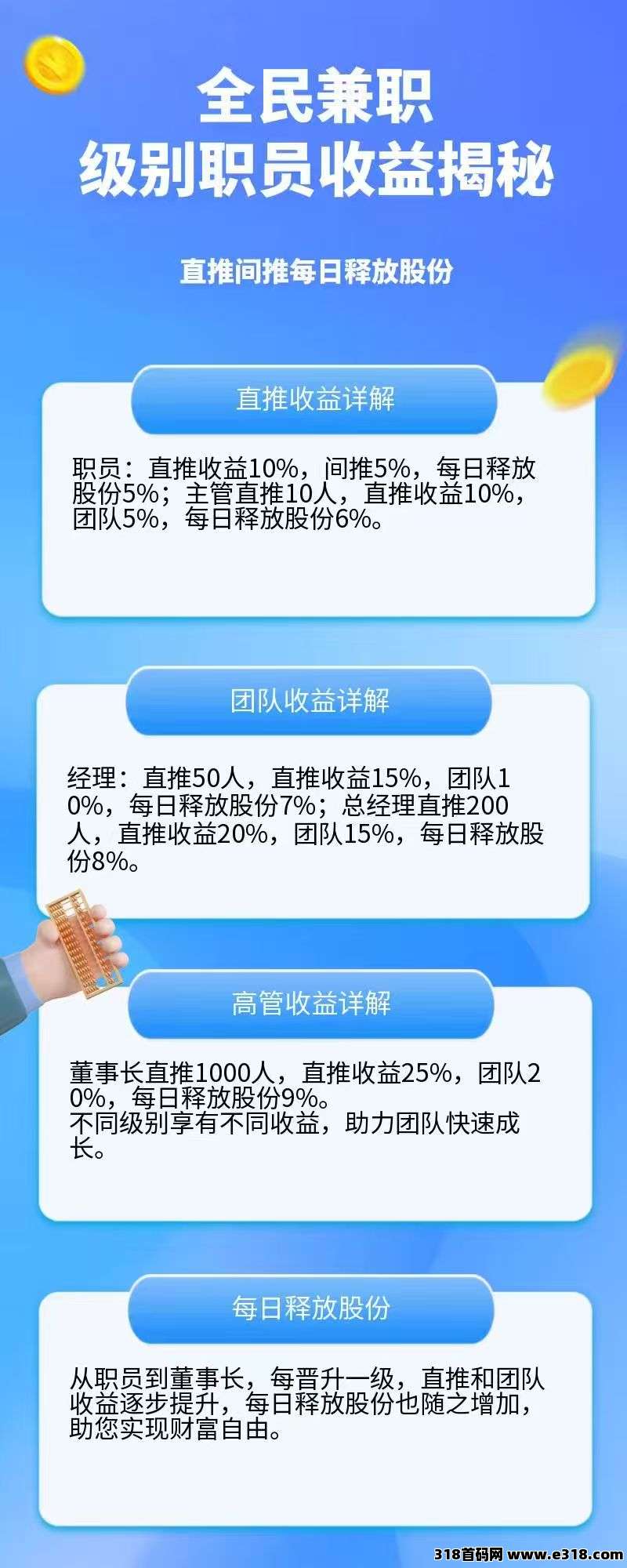 | 免责声明:合作之前建议签订合同,318首码网作为信息共享平台无法对信息的真实性及准确性做出判断,不承担任何财产损失和法律责任,若您不同意该提示,请关闭网页且不要在本站拓展任何合作,否则造成的任何损失由您个人承担。 | |