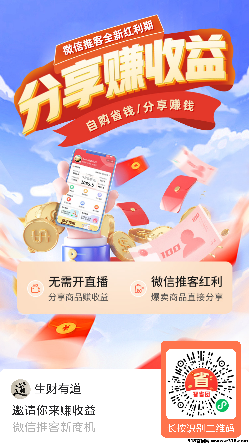 微信官方推客红利期,搞钱新风口,自购省钱,分享赚钱,无痕日入千元