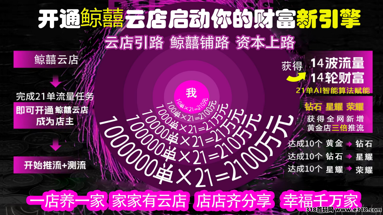 鲸喜云店,0元投入即可撬动百万收益,一店养一家,家家有云店。