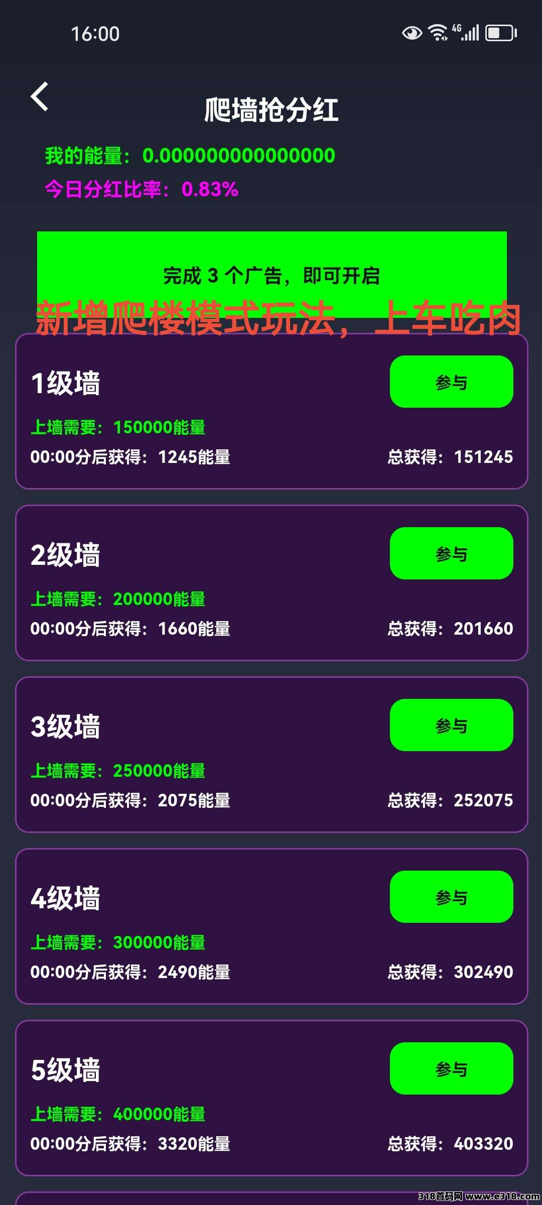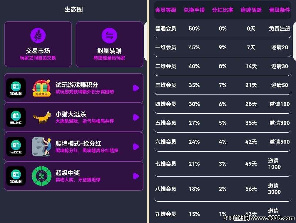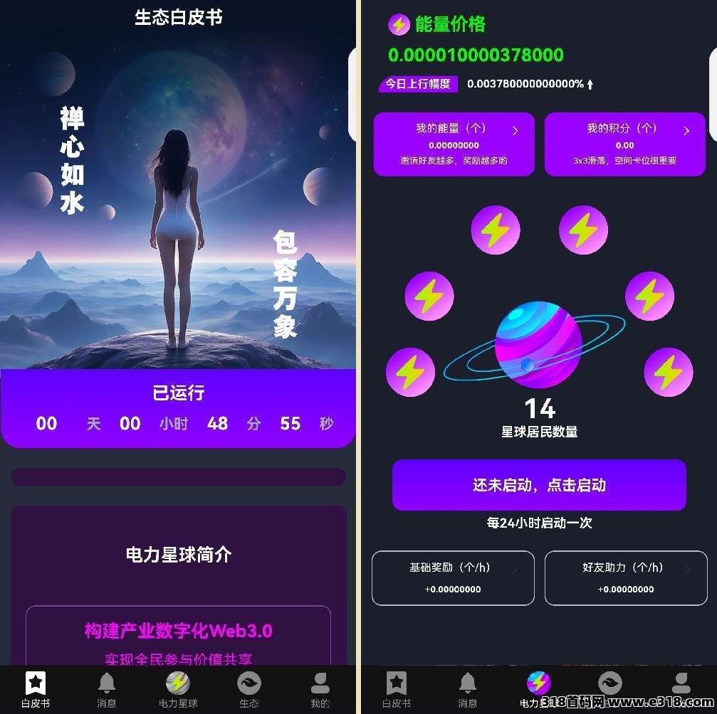 电力星球零撸,圈圈模式,3x3九维滑落,每日广告可获得个人收益以及9维空间收益