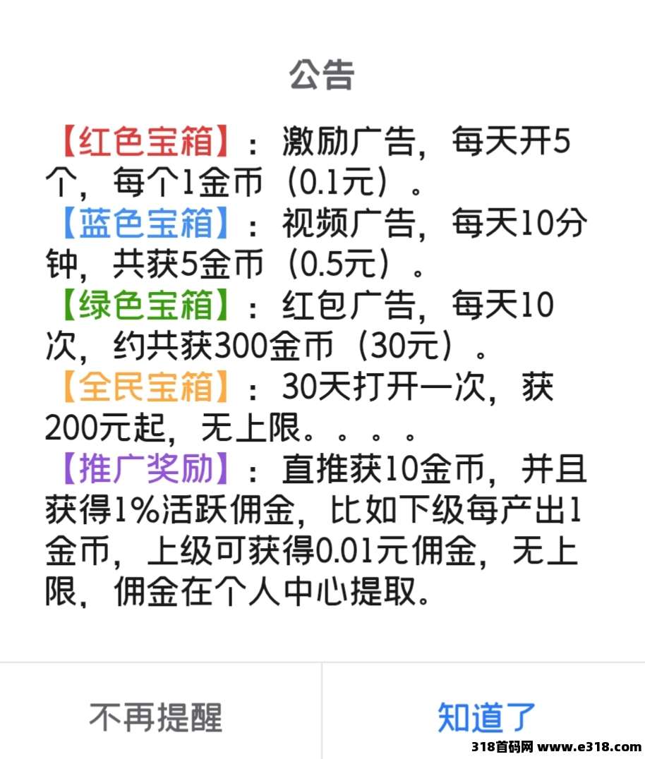 最新首码火爆项目【天天宝箱】来袭,1元就可提,高额游戏高额任务等你来!