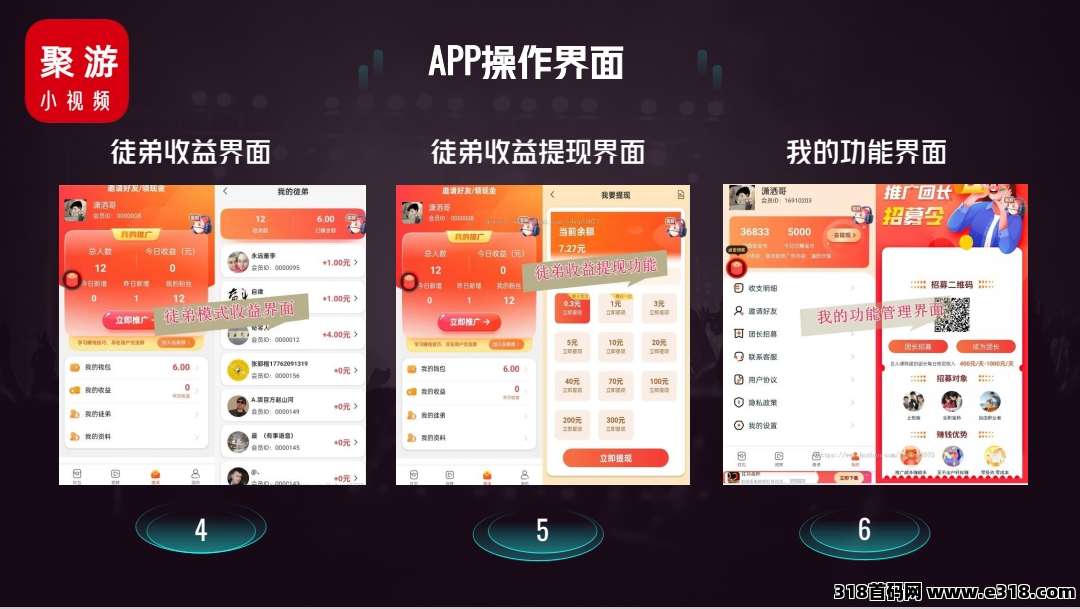 晋升高级团长每日享受平台广告收益5%-10%平台当日收益为10000元,高级团长则获得500-1000元,永久**。