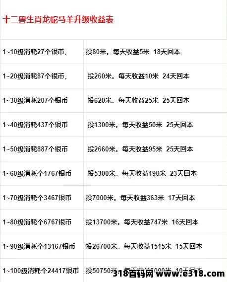 生肖可以升级,提高每日收益。