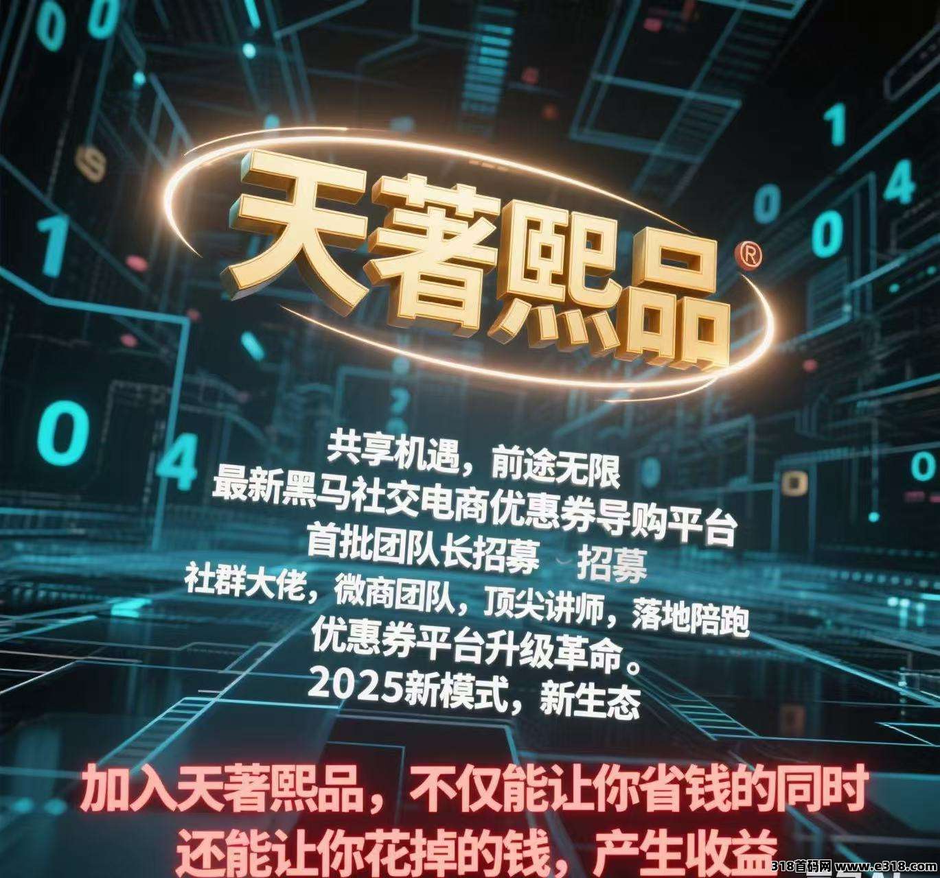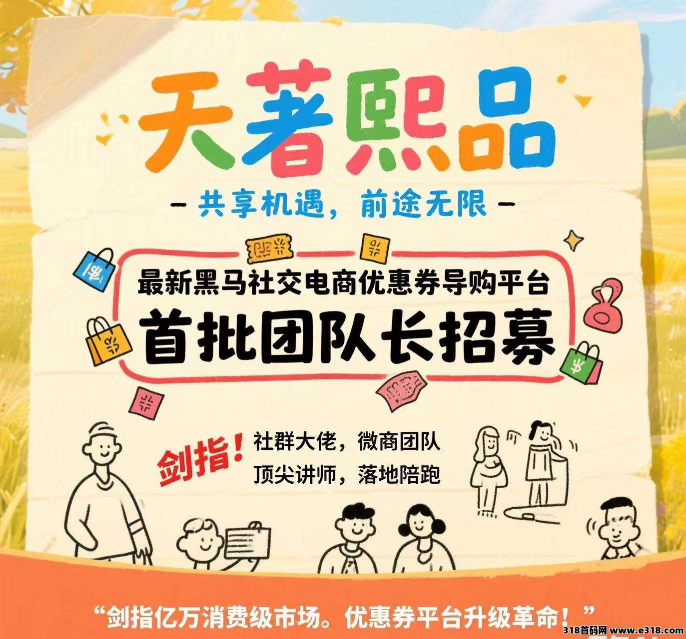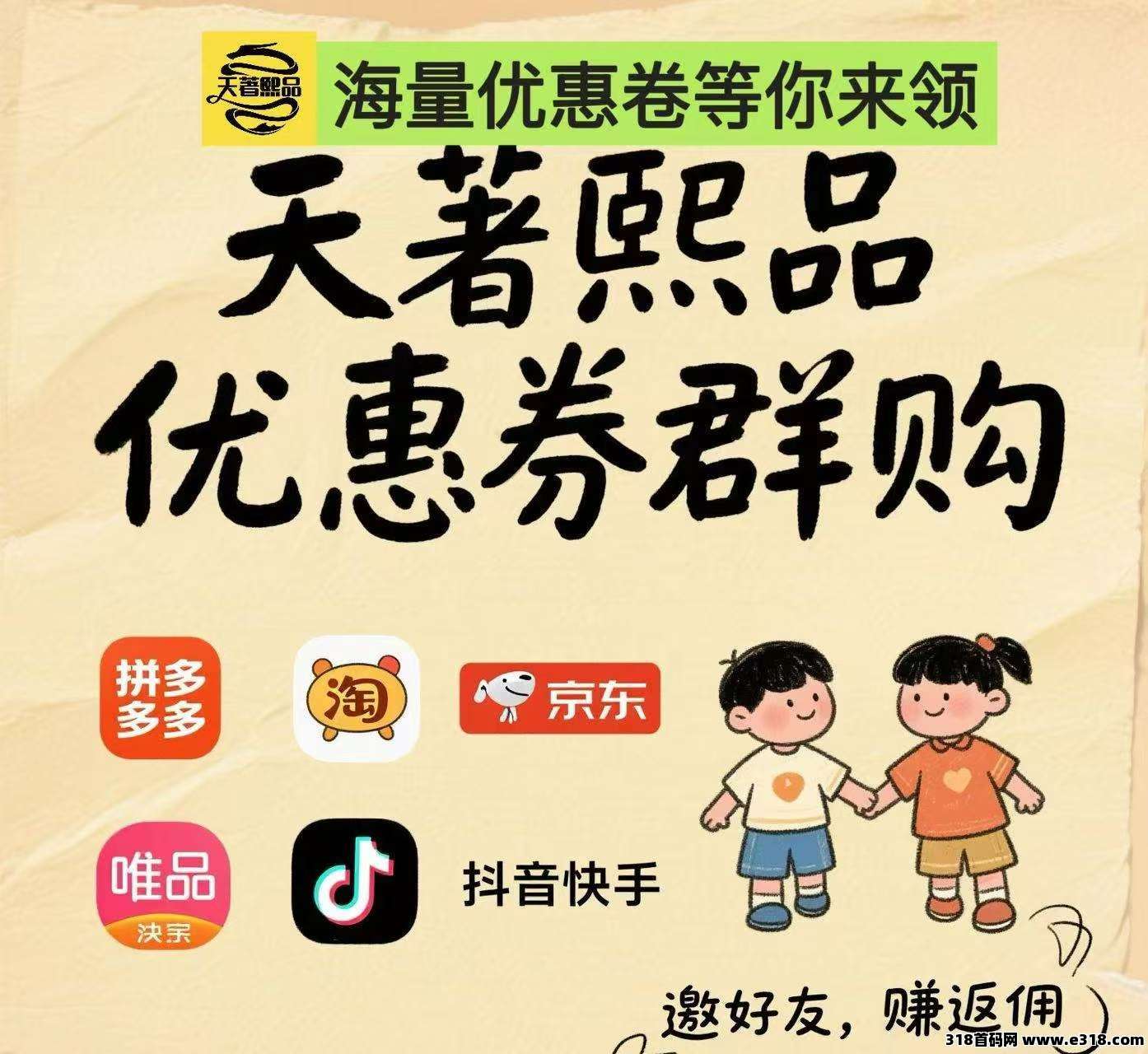 天著熙品X?首批打破旧制度,创造新概念的优惠卷黑马平台。注册就送联创总监,如同其他同类型返利平台最高等级。一次裂变终生躺赚。跑马圈地很重要