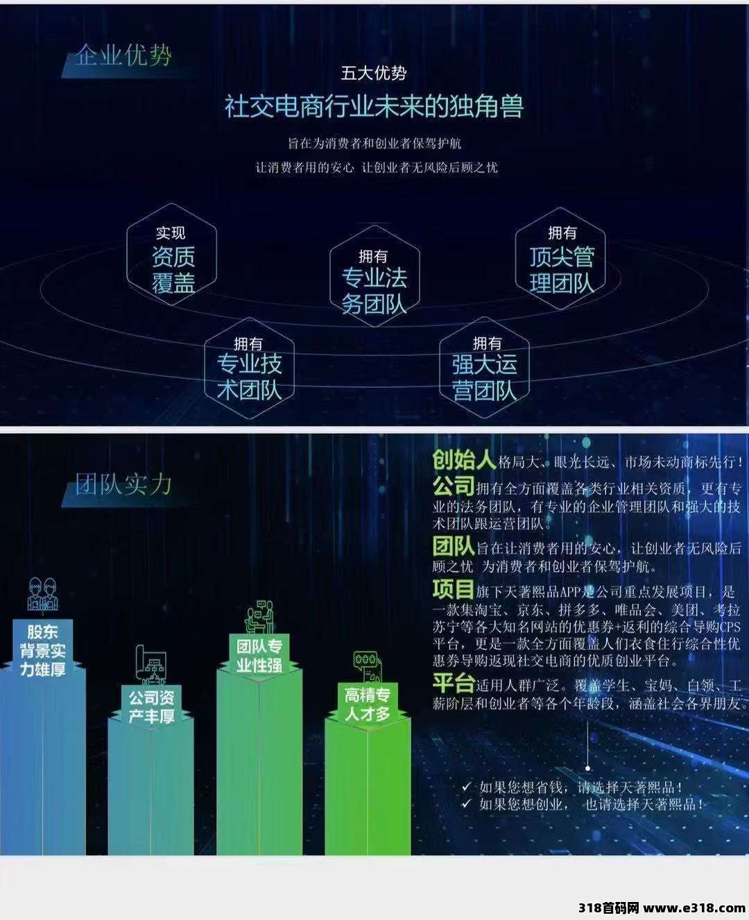天著熙品APP是公司重点发展项目,是一款集淘宝 京东 拼多多 唯品会 美团 考拉 苏宁等各大知名网站的优惠券+返利的综合导购CPS平台 更是一款全方面覆盖人们衣食住行综合性优惠券导购返现社交电商的优质创业平台 各种功能应有尽有,如自营商城 社区拼团 区块链 等一系列特色功能。为您的衣食住行 吃喝玩乐增添色彩 让消费精致您的生活 每年都能帮您节省一部分开支。更能带动社会就业,为人们提供一个低门槛。无风险的就业机会。平台理念:坚持创新精神,服务大众 更为有梦想的创业者提供一个可发挥自己潜力的舞台。