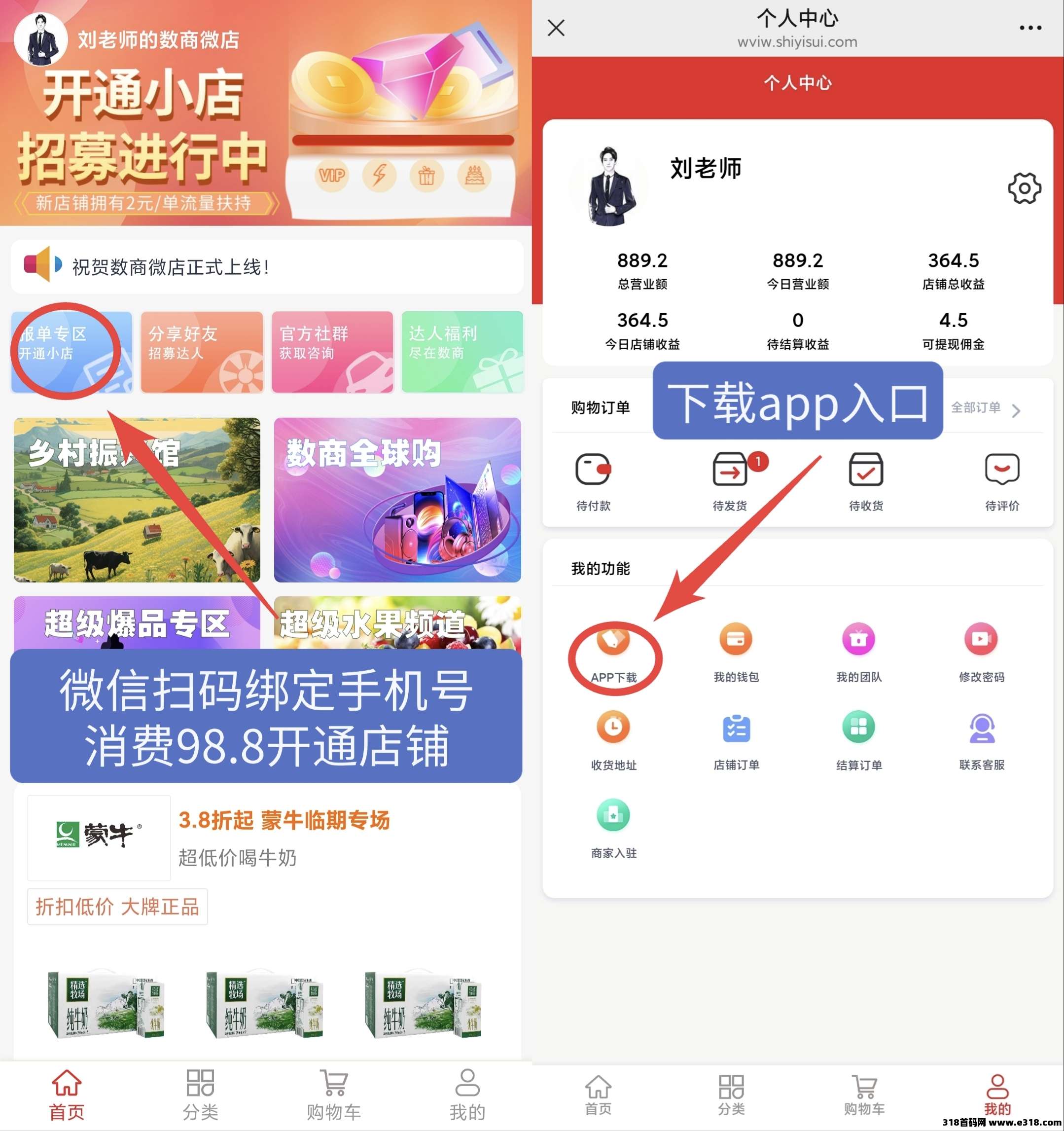 1消费98.8开通店铺