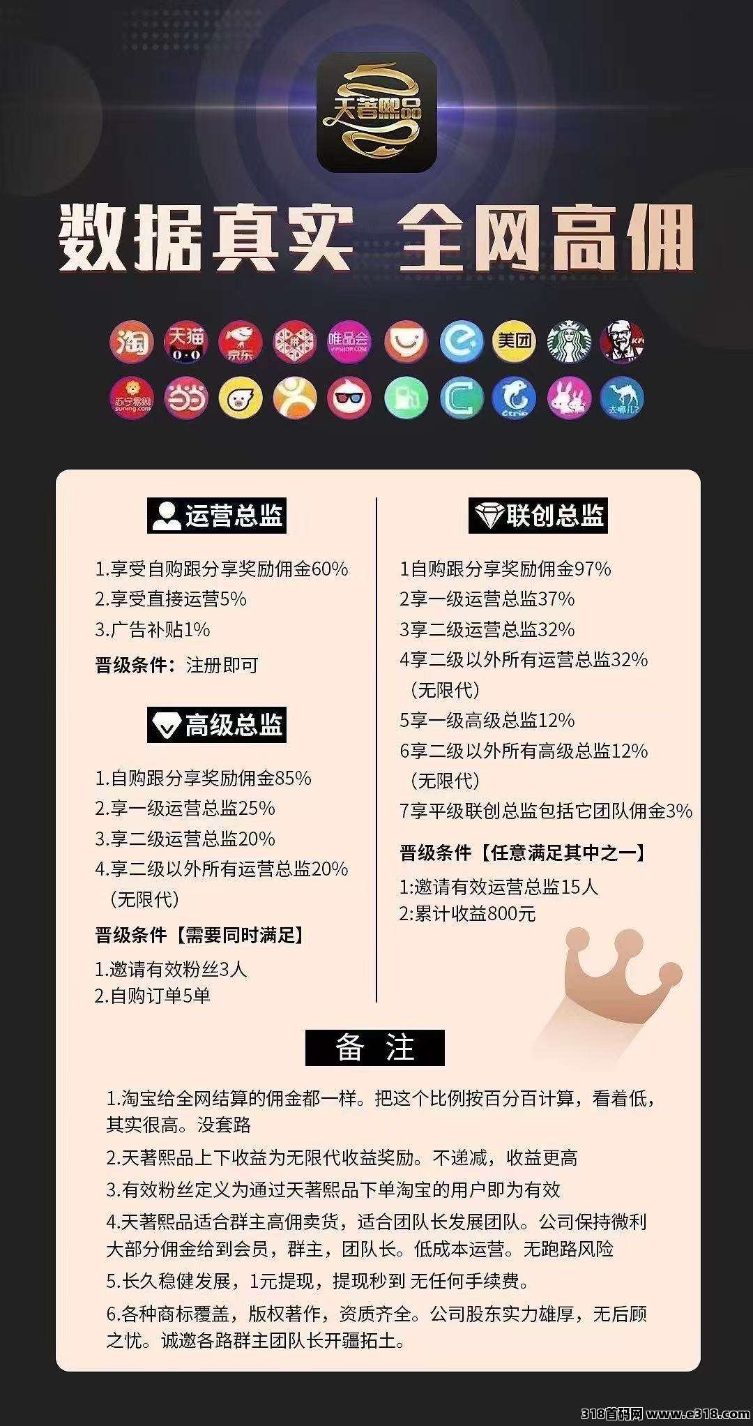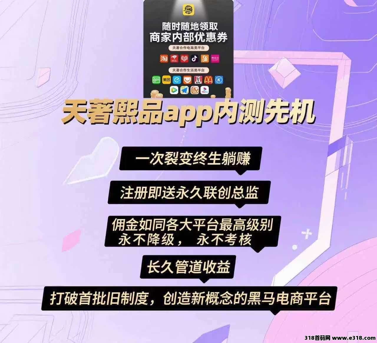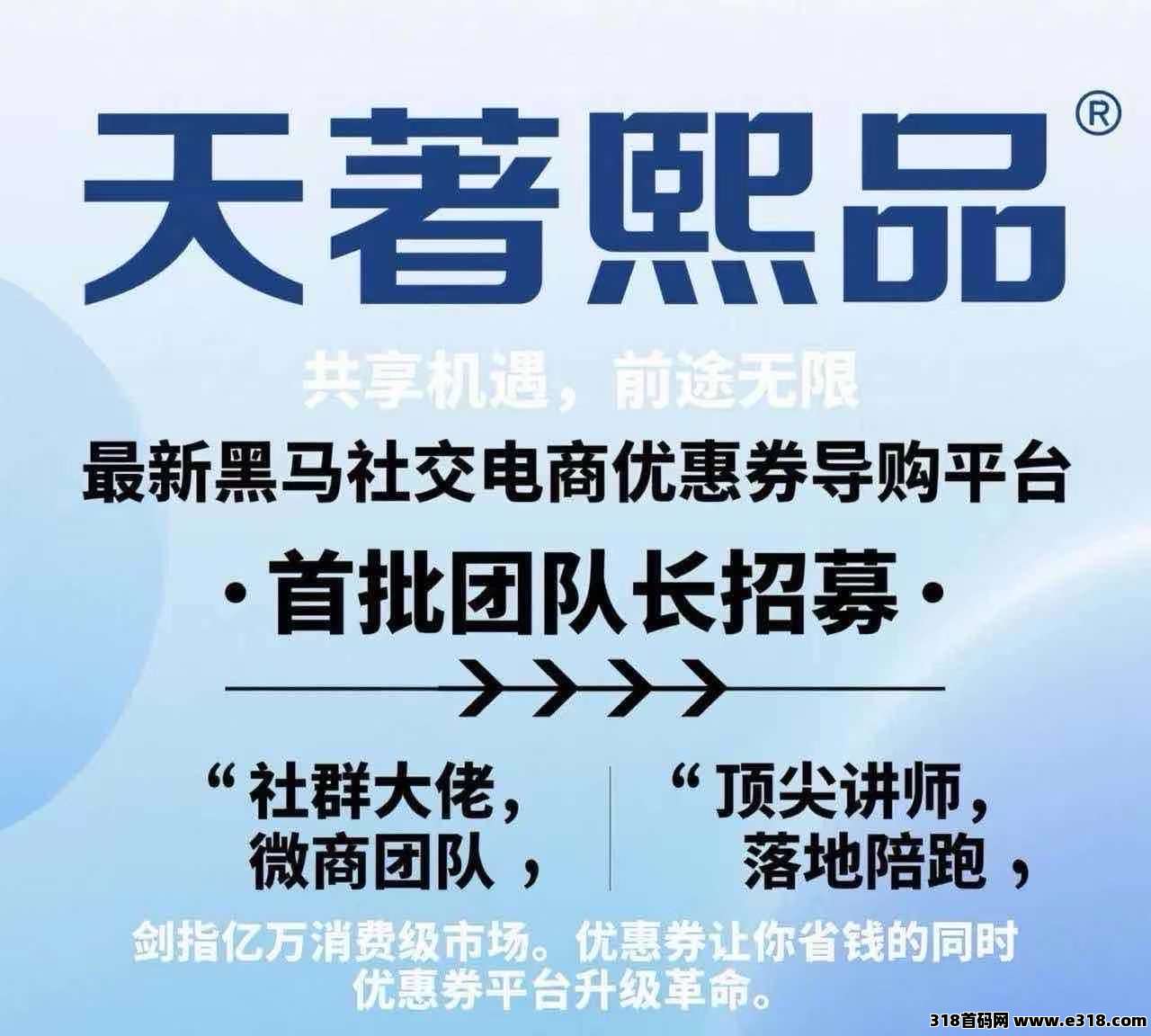 天著熙品最新黑马电商优惠卷导购返利平台火爆来袭,注册送平台最高级别