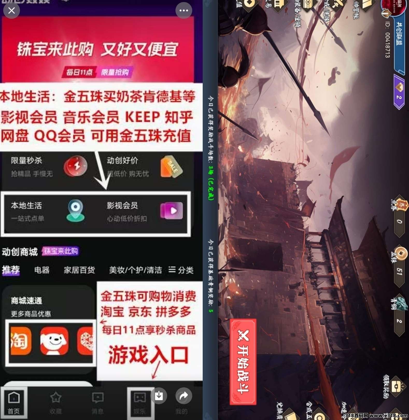 ②、娱乐→进入游戏界面→开始战斗(自动战斗结束自动退出,显示已完成即可、次日领取奖励)