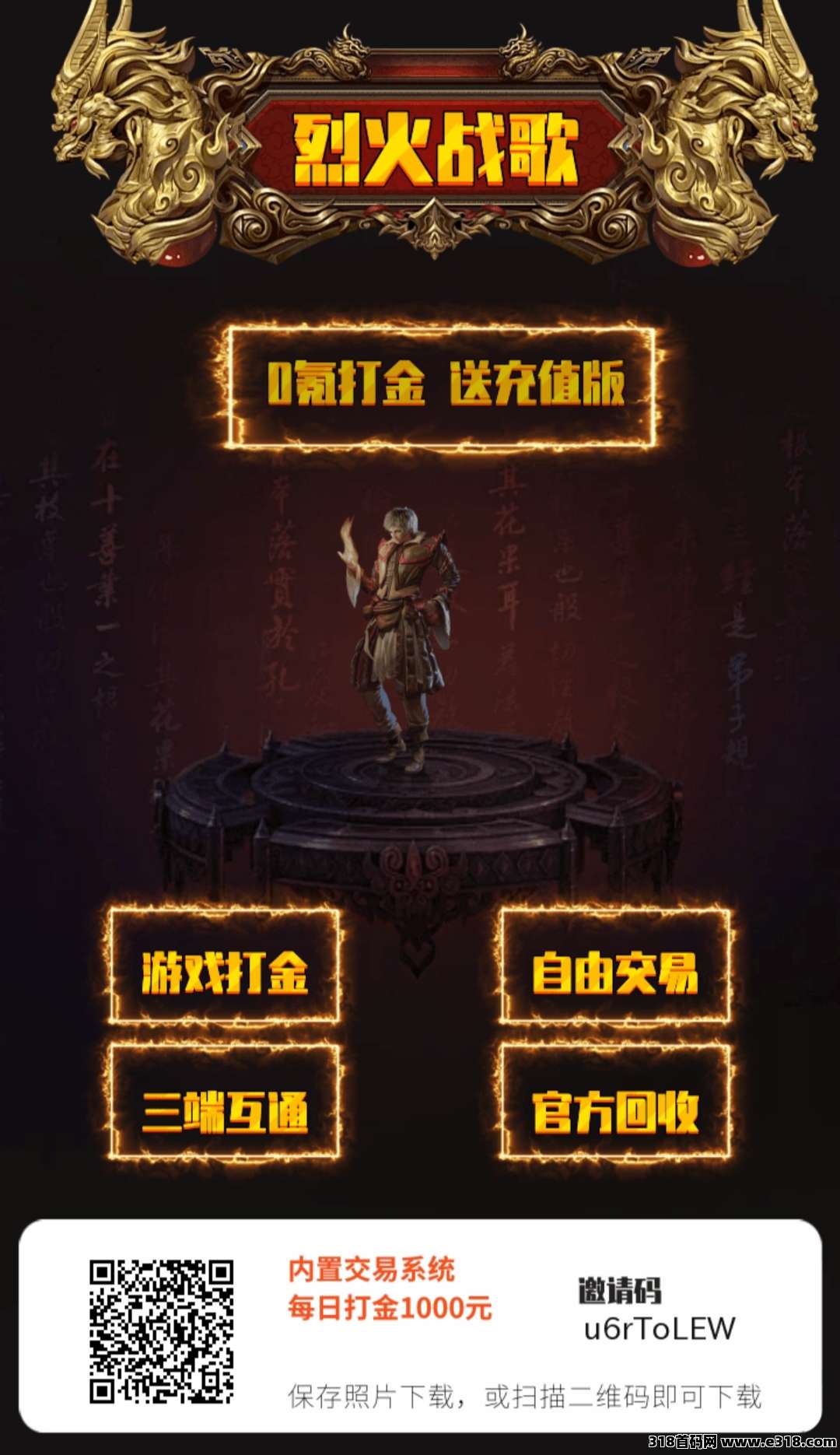 烈火战歌首码,内置三款游戏,一款自由之刃,一款怒火一刀,新增一款屠龙圣域
