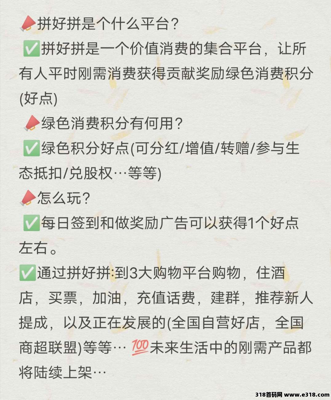 总之,你在拼好拼的任何贡献,都会以绿色消费积分“好点”给你公平记账。