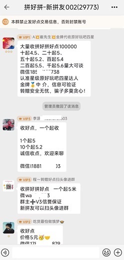 5、团队交易群如下,找那些等级高点,每天活跃一些的,加好友,在“我的”-“好点转赠”转他们变现。(新人1天后可转)