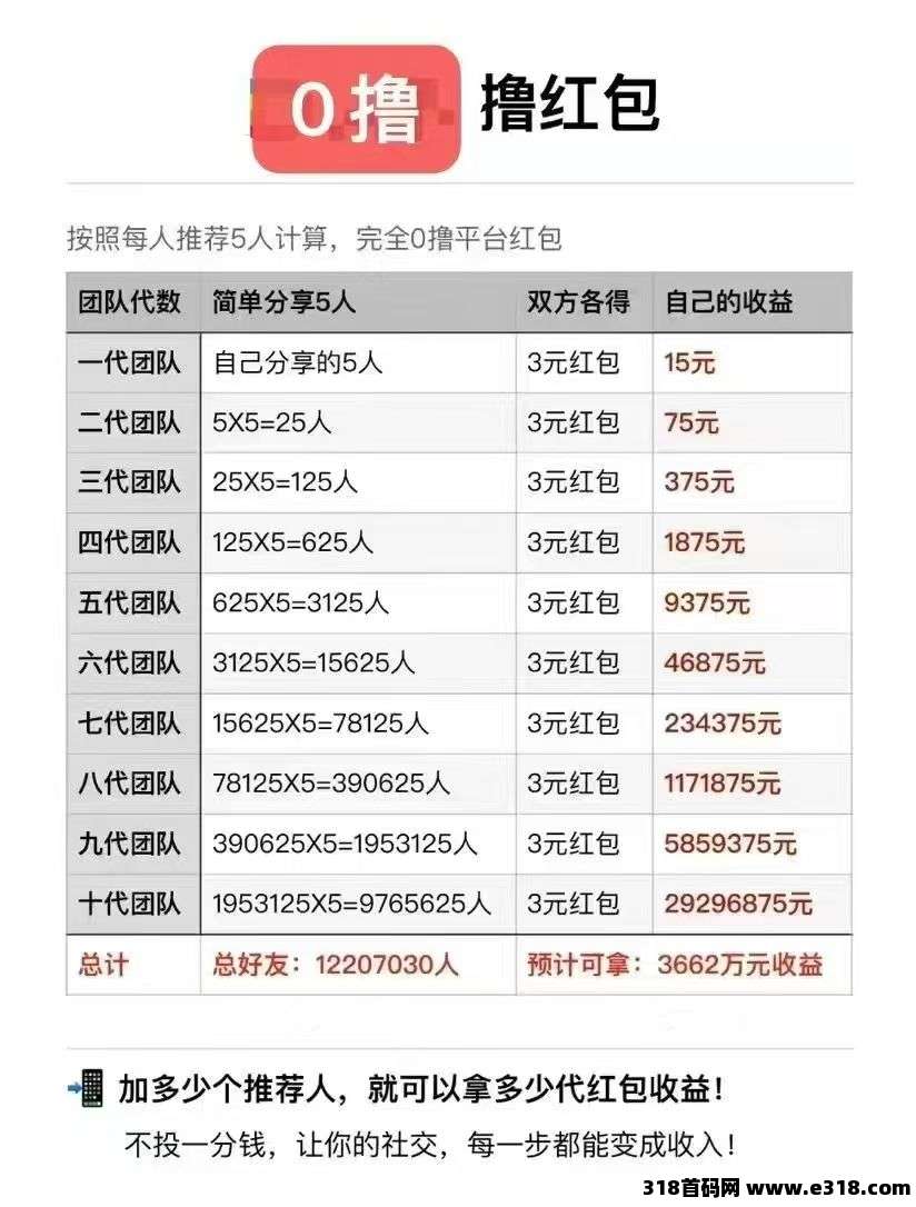 首码0撸项目,刚刚上线的0撸新平台,不需要投资一分钱,注册就送3块钱,提现0手续费!推荐一个人再送3块钱,伙伴推荐一个人你也得3块钱!最多可以拿10层的3块钱,全程不花一分钱!没有任何套路!提现秒到账,0手续费!