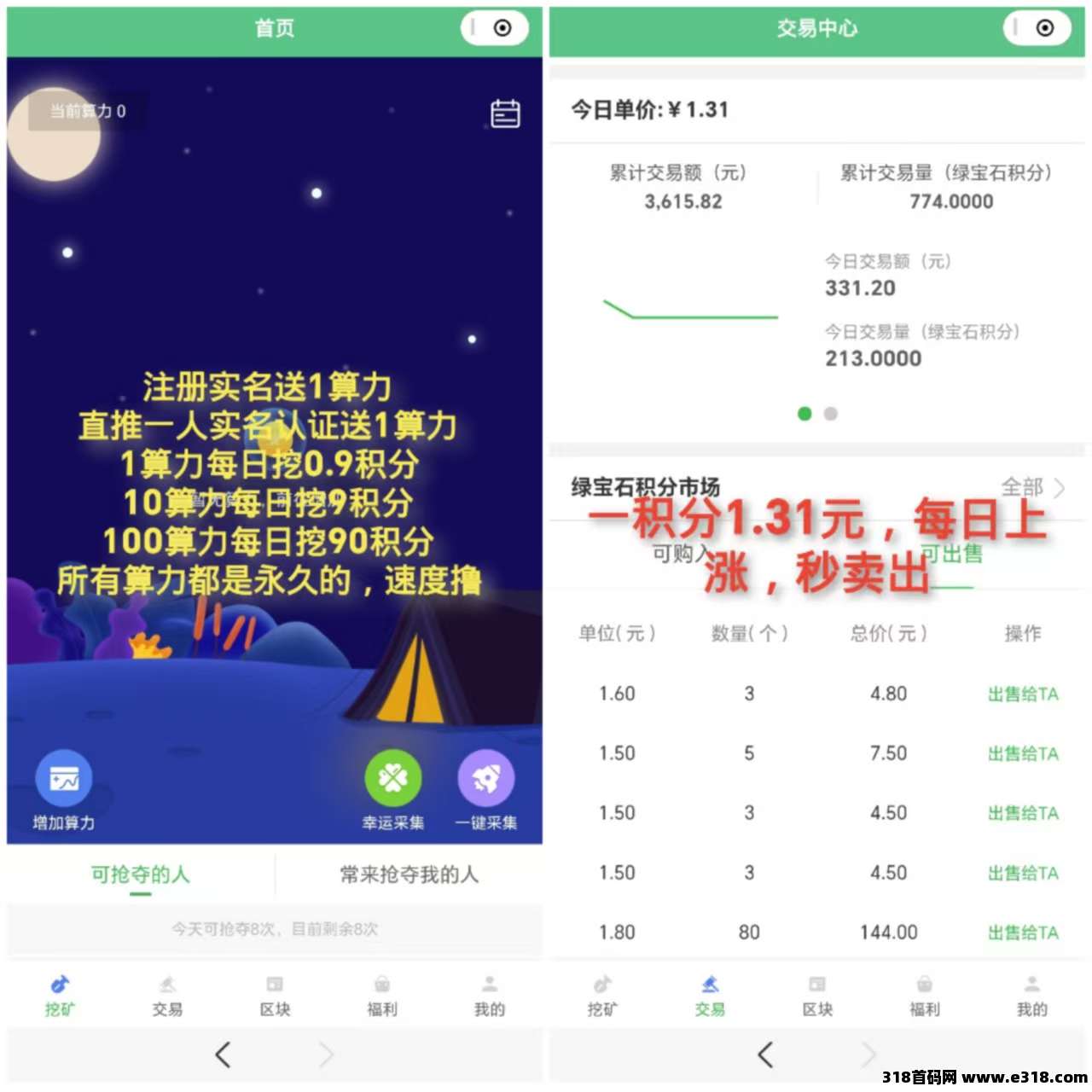 首码刚出最新撸绿宝石积分项目,速度上车占位吃肉了,不能错过