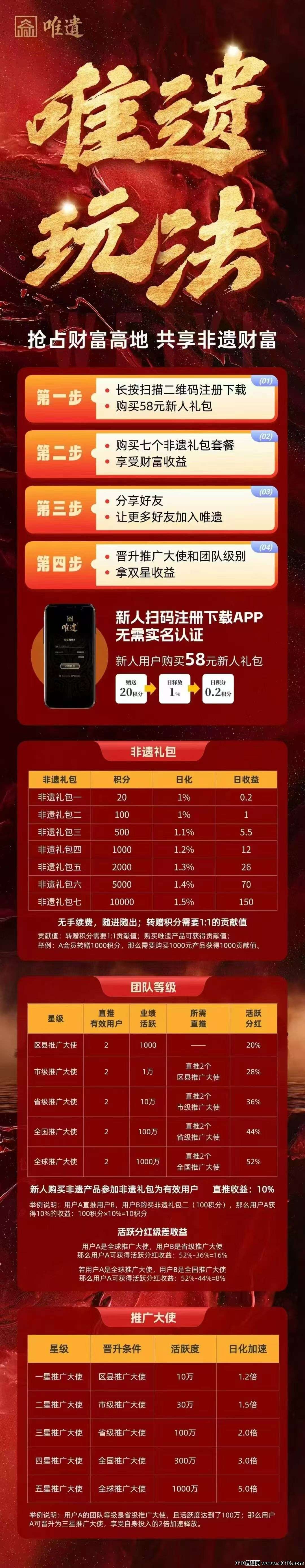 唯遗商城一共有七个礼包然后呢现在目前最多只能买四个礼包这四个礼包加起来大概是八千多块钱儿每天呢是赚 100块钱左右。然后剩下的那三个礼包需要去市场收积分才可以买。然后呢本金是随进随出的没有任何手续费。日*化呢这四个礼包是1%~1.2%剩下的那三个礼包是百百分之1.3~1.5%。
