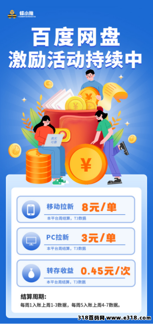 想做推广其实很简单:打开微信,在搜索栏输入“蜂小推”,找到官方公众号点关注,跟着指引下载APP,注册时记得填邀请码000000。之后在APP首页找到“百度网盘推广”板块,申请开通拉新权限,一般1-2个工作日就能审核通过,专属的推广链接就会发到你账户里,随时能转发。