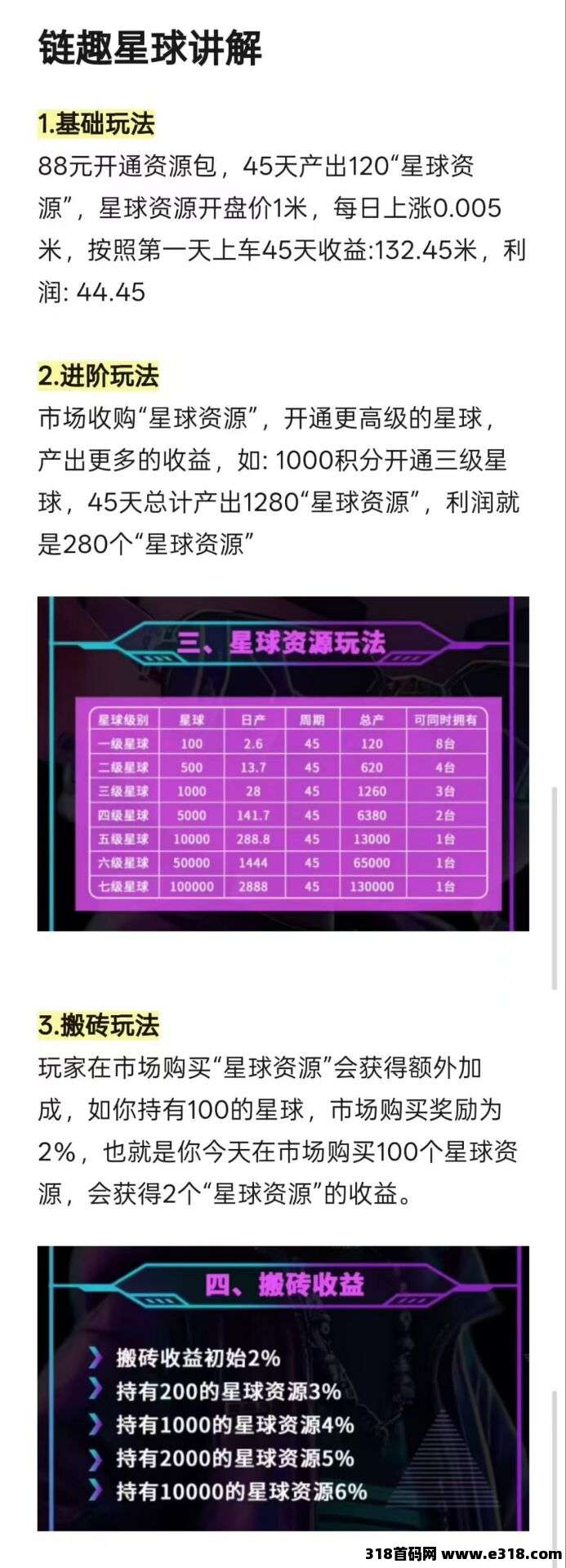 每张星球咔周期为45天,期间可累计产出120枚星币,平均每天约2.6枚,且整个过程无需额外操作或手须费。所产星币可直接兑换新星球咔,实现稳定的内部循环,保证了项目的可持续发展和长期收溢。星币初始价格定为1圆,且每日自动上涨0.005圆,潜力明显,收获空间广阔。