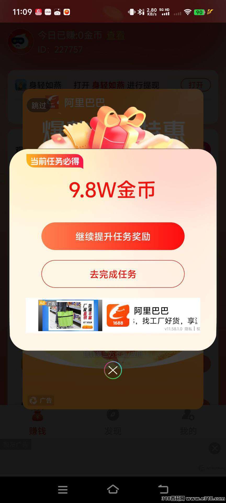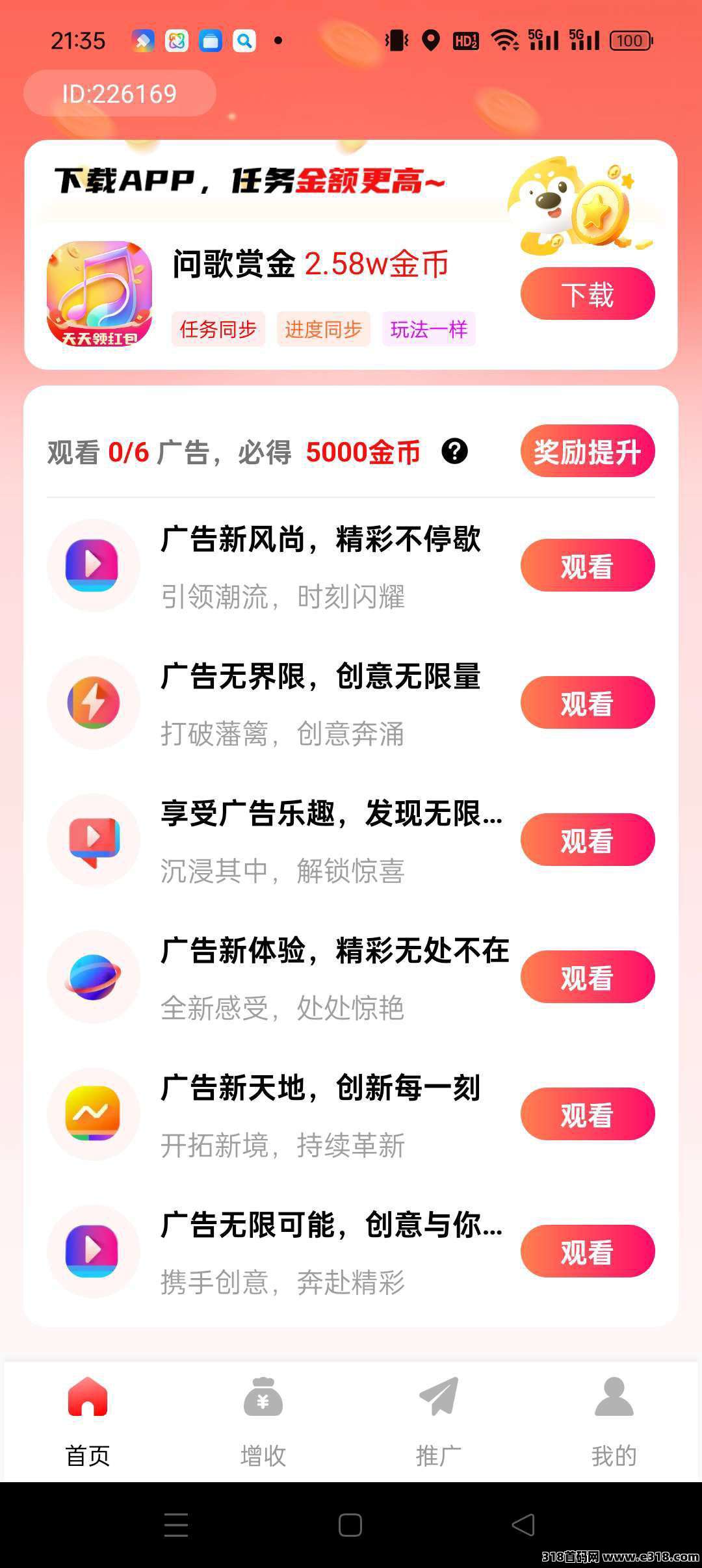 保底一轮六个广告0.5~5米,奖励无上限
