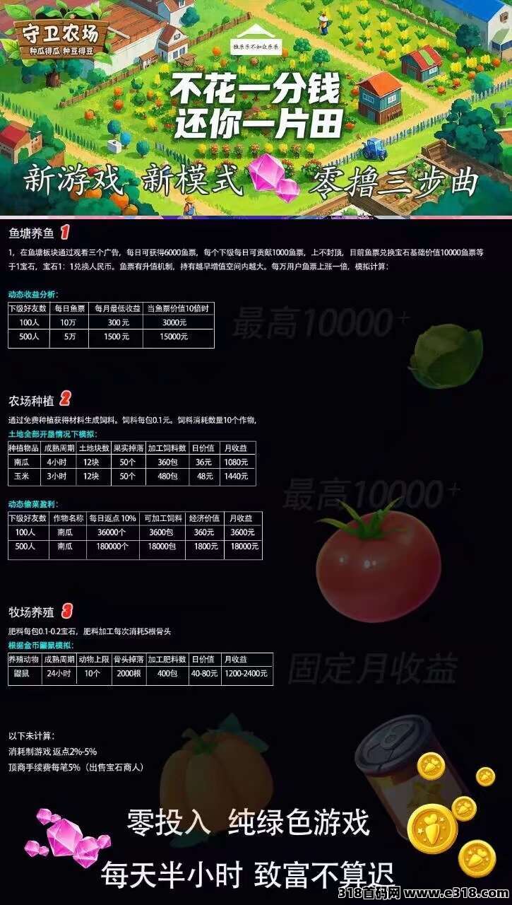 守卫农场零撸天花板已经出来快5个月了,项目稳定有兴趣的可以来