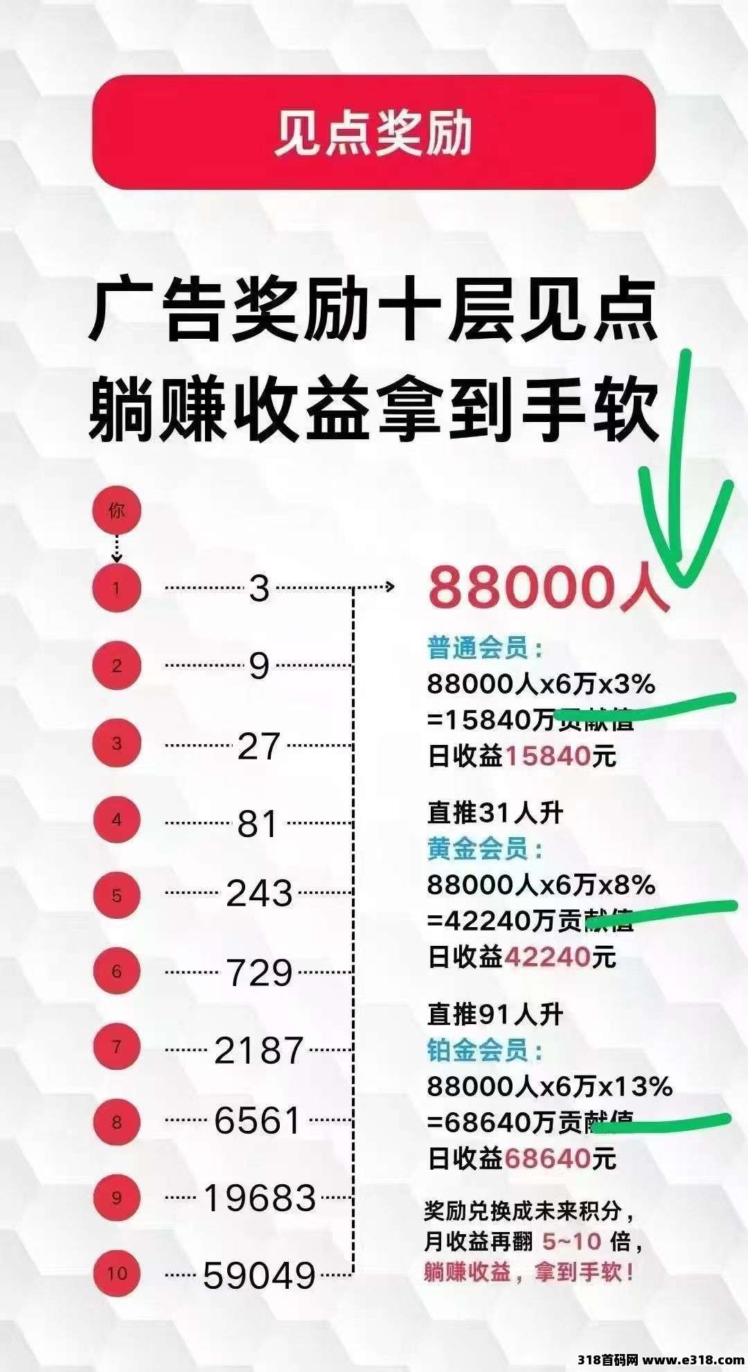 首个铸B机制,首码对接;.看广告平台,每条广告保底0.3米,每天保底3-6米,每天5~30%,随时秒卖变米,复制看广告+做团队