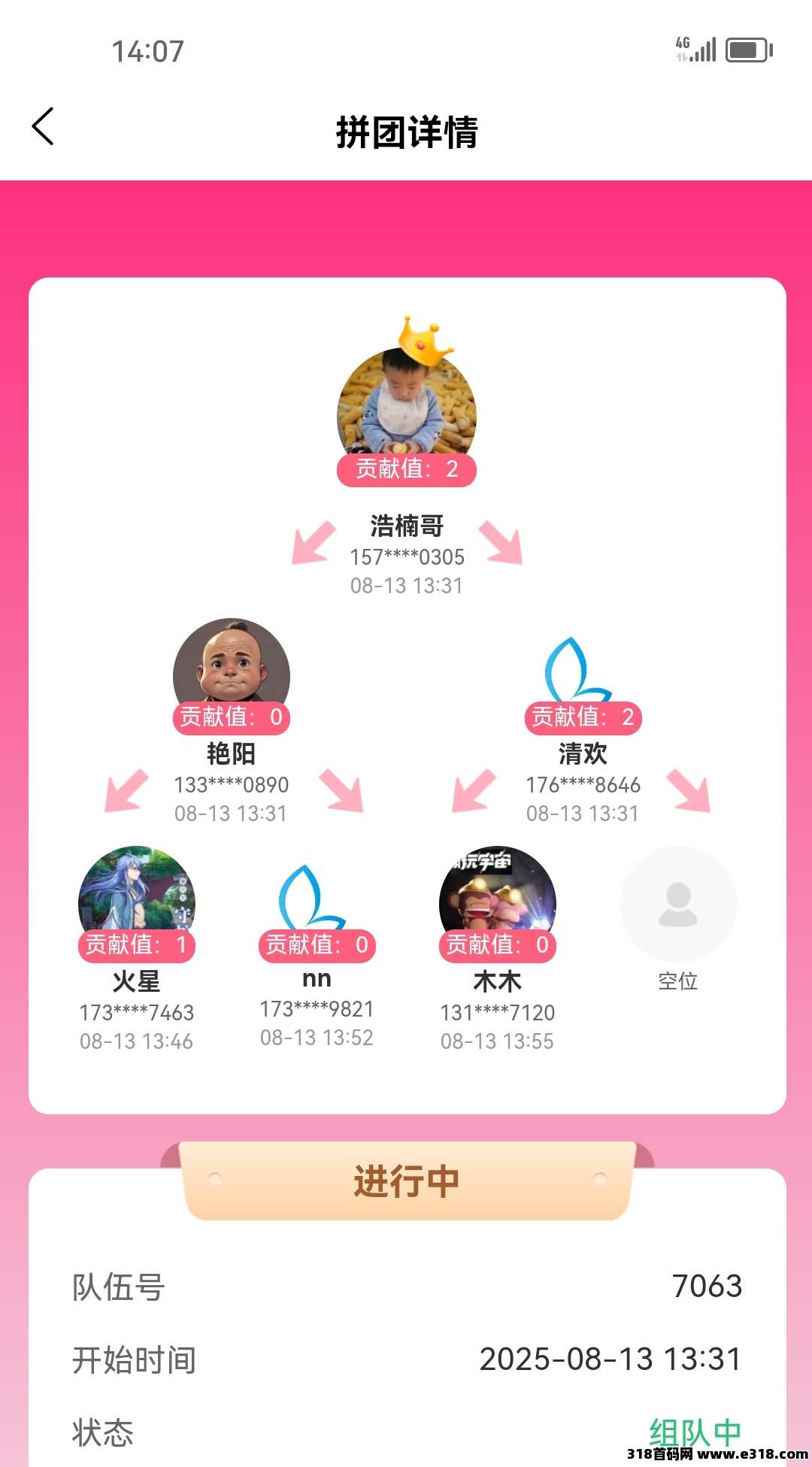 此次蓝洋洋的模式做了全新优化,就算你不推广,只要所在队伍满7人就会出局,所有参与者都能获得10%-160%的红包奖励。
