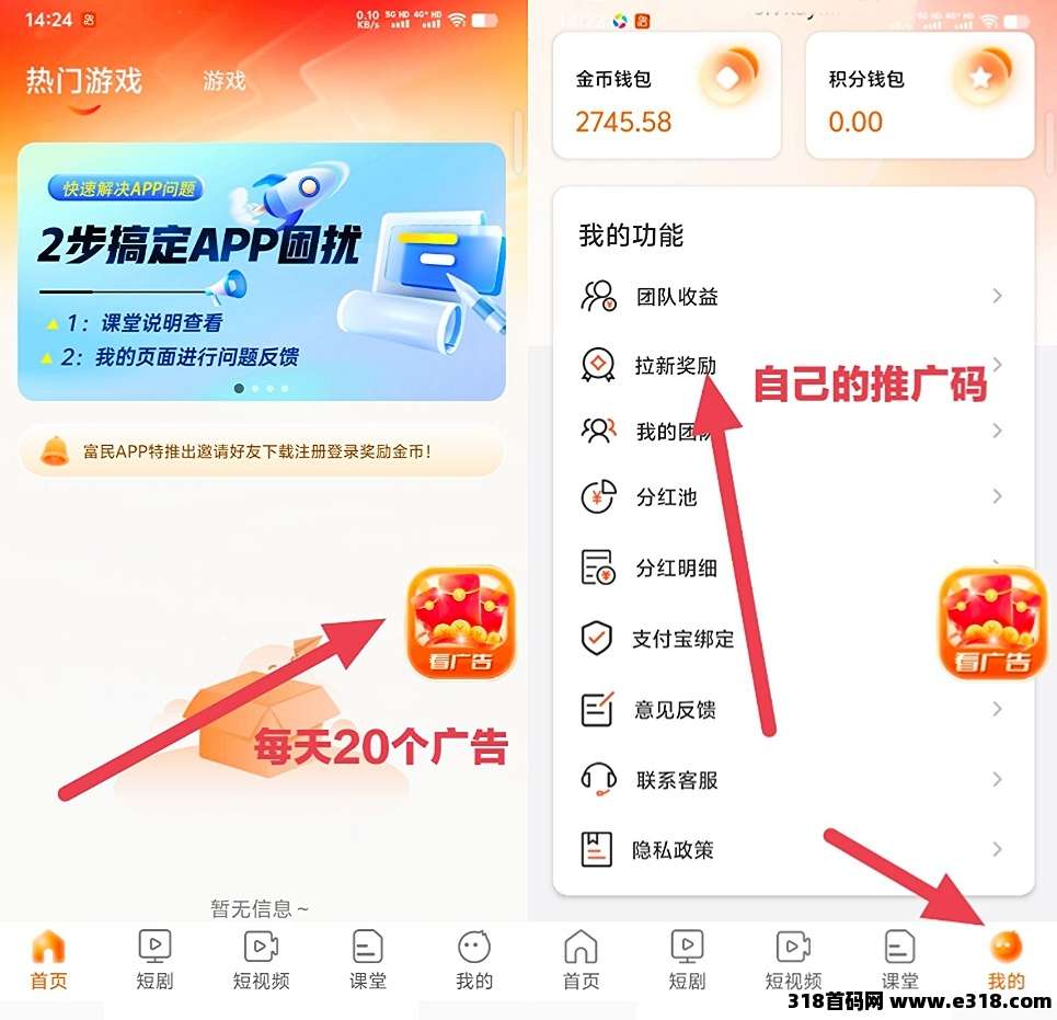 首码【富民】零撸广告赚,不养机保底收益高,一天轻松几十块,每天保底20个广告,新人奖励2米,保底,顶包1元,1元起瑅,绿色最新模式,