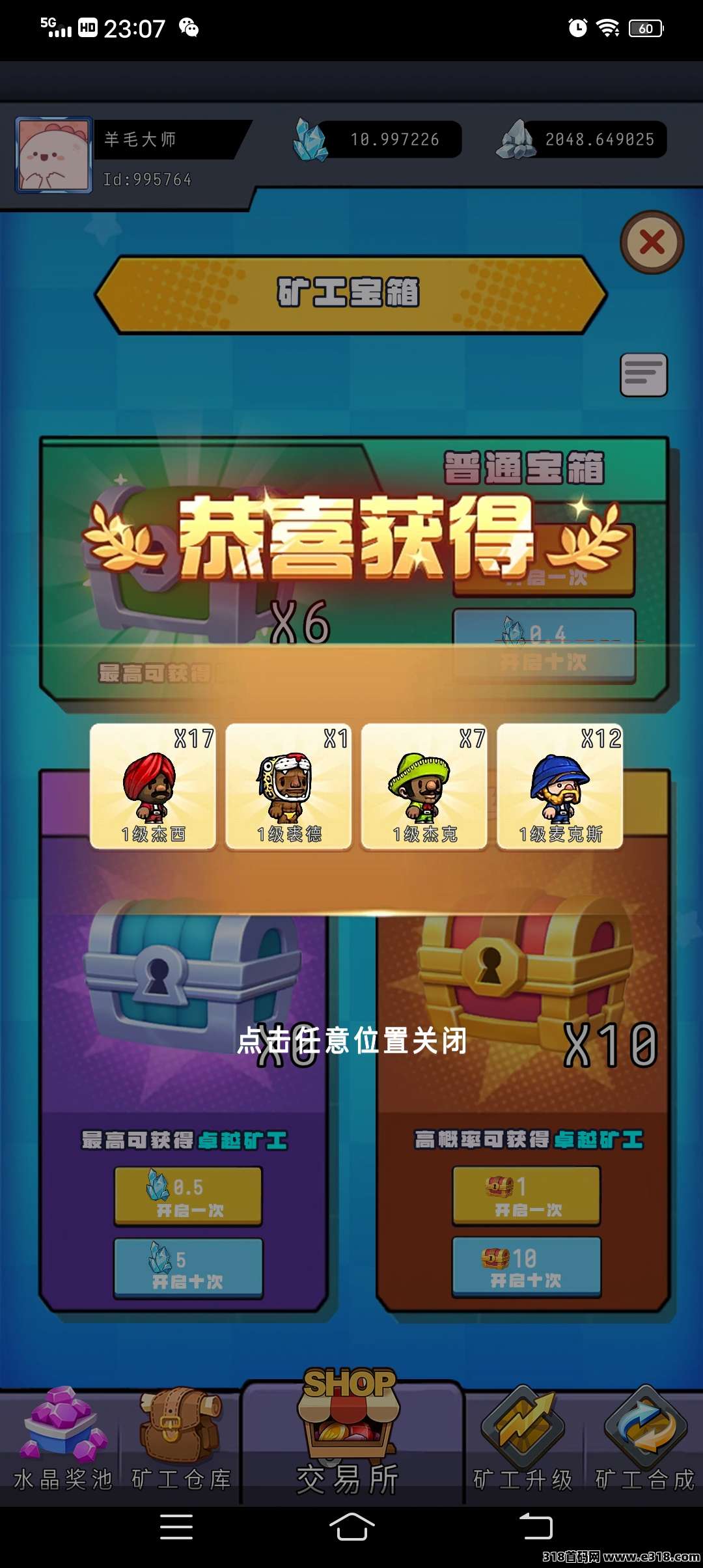 3:矿工不要合成,不要升级(升级失败矿工销毁),合成几率是按照数量的,两种矿工各50个+50晶体就是50几率,所以尽量别去合成升级,不划算。
