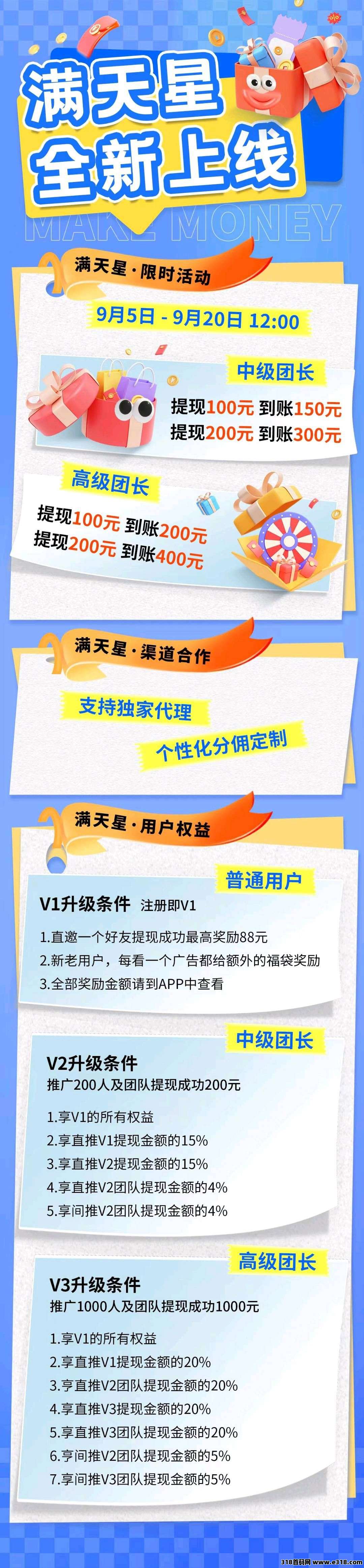 【满天星】看广告赚米,保底收益高,新品有水,1元起最新模式有水,可连 包,每个广告几分或几毛左右不等,每天轻松30~50元