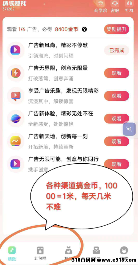 ①玩法上非常简単:每天通过签到、看广告、刷短视频、观看短剧、猜歌、领虹包等方式即可获得奖励。不限时不限量,看得越多赚得越多,単号每天稳定在20-50+之间。