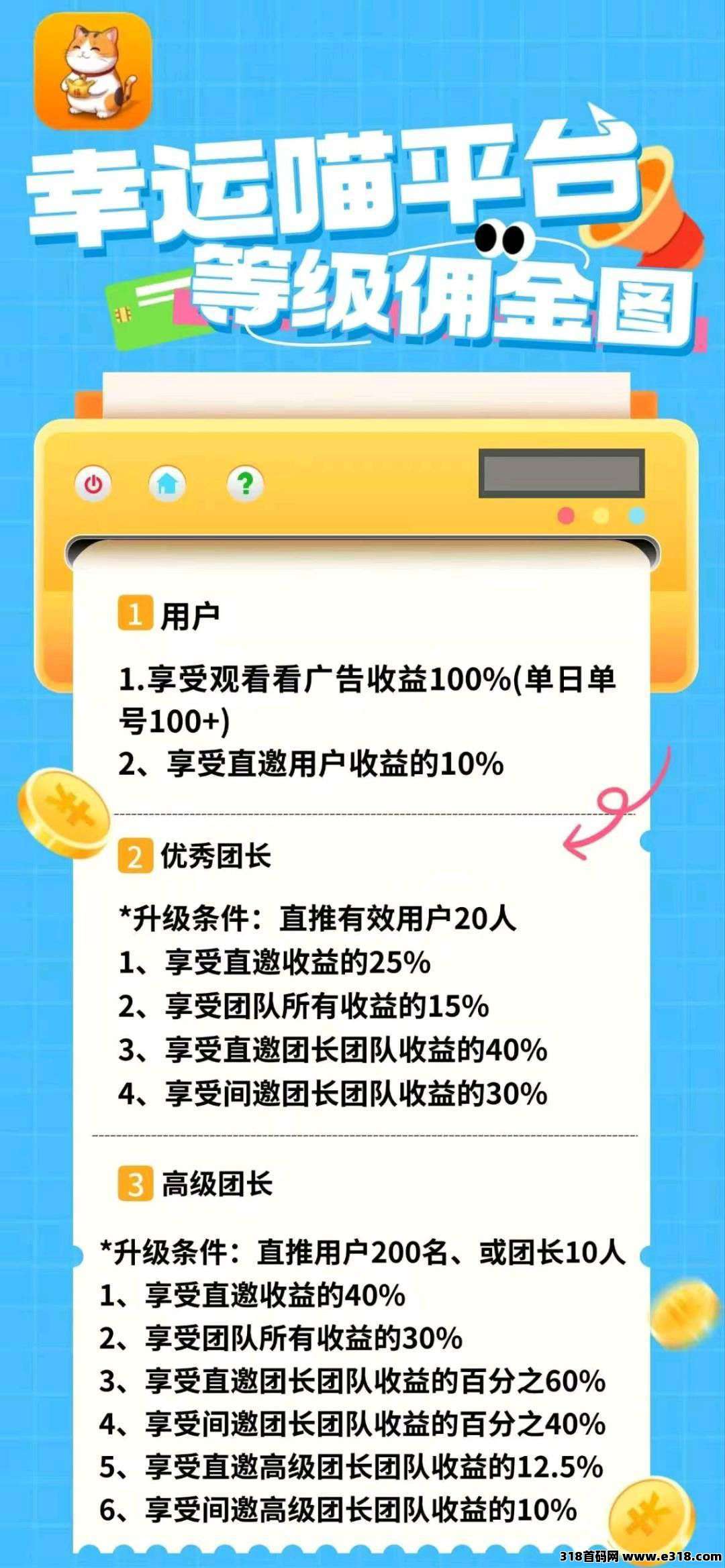 幸运喵,纯零撸看广告,不养机收益高,单机每天10-30+
