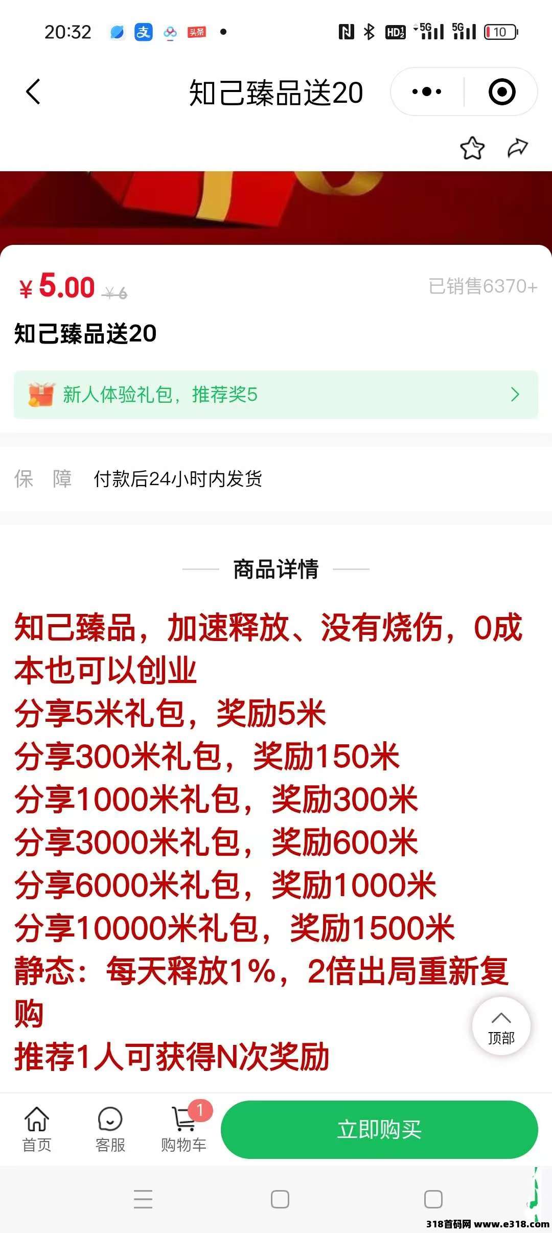 4️⃣重新下单5米开通送20豆子,重新增加释放,循环玩法,长久撸大米+商品,10米 起提!