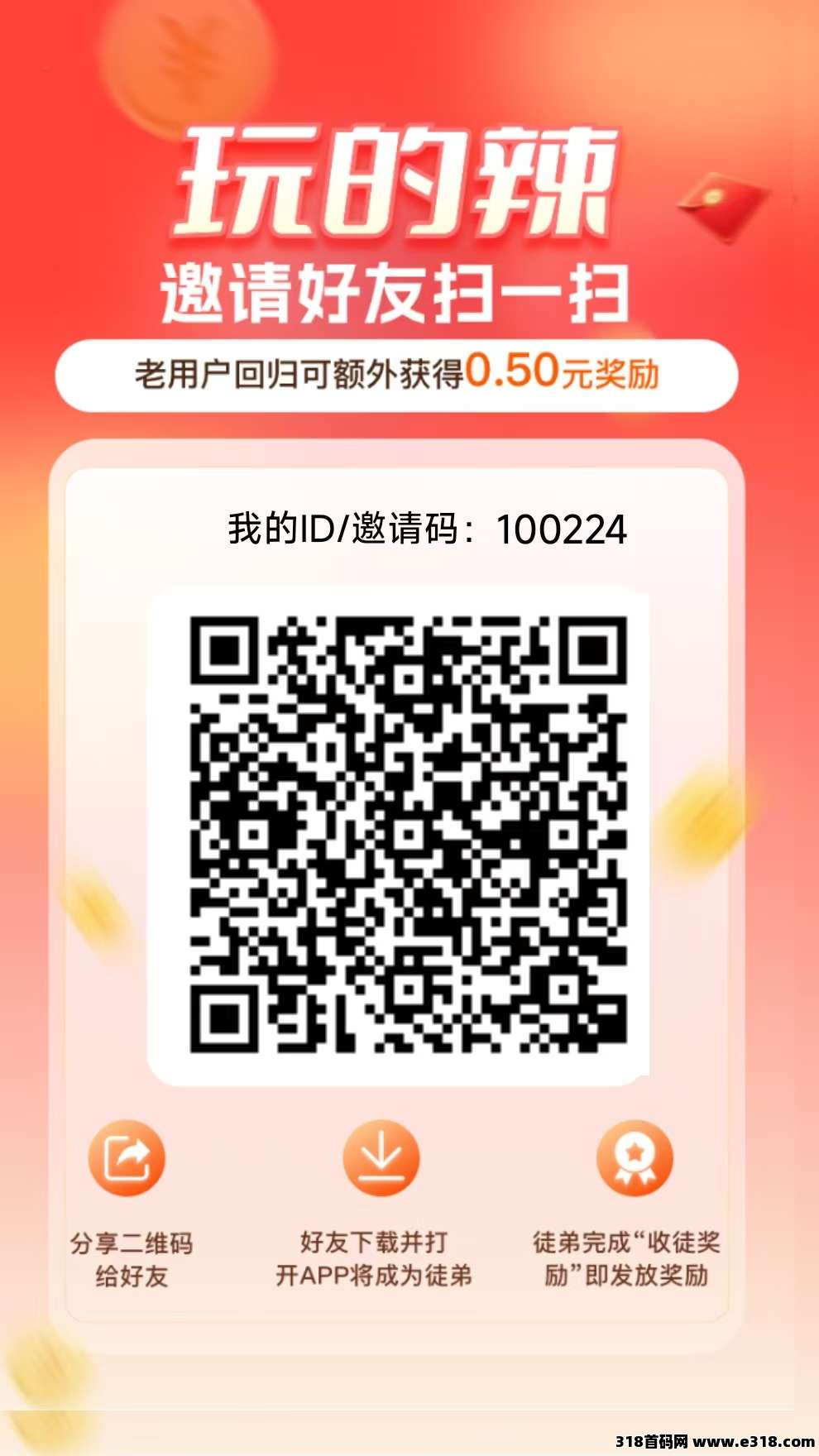 【玩的辣】是轻声如燕旗下平台,大公提现有保障!看广告领金币,1万金=1米秒提现!此版本融合京东购物,外卖返利等机制,让会员不再光以看广告为主!