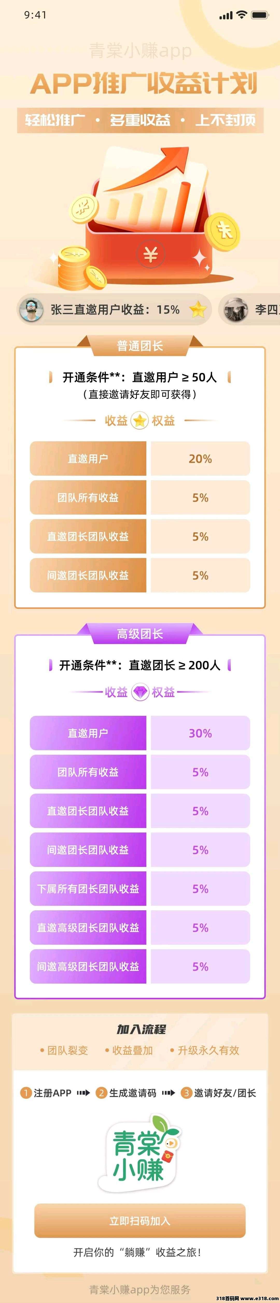 〖青棠小赚〗广告赚,保底收益高,团长模式,刚出有水