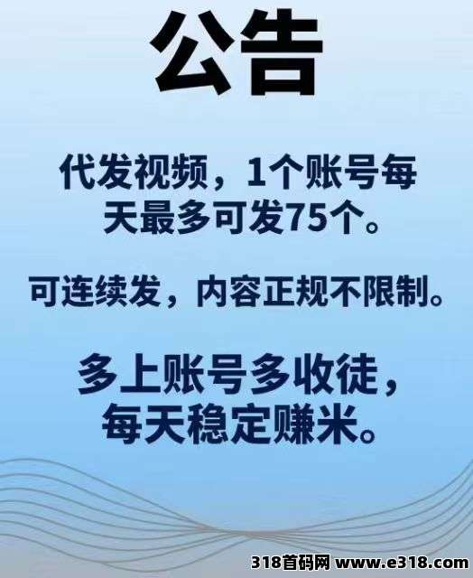 项目正规,稳定,长期。平台内容正规,可以长期发,您发的越多,平台赚的越多,同时账号越发视频播放量越好,你的收入也越高。