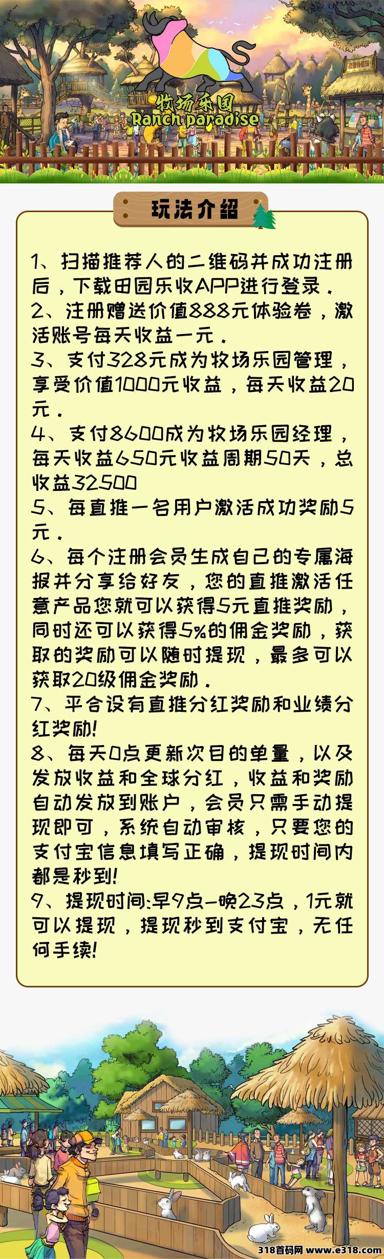 团队领导人驻扎公司牧场乐园是实体上市公司旗下产品9月13日火爆上线!0撸分享1级5%,2级2%,3-20级1%。