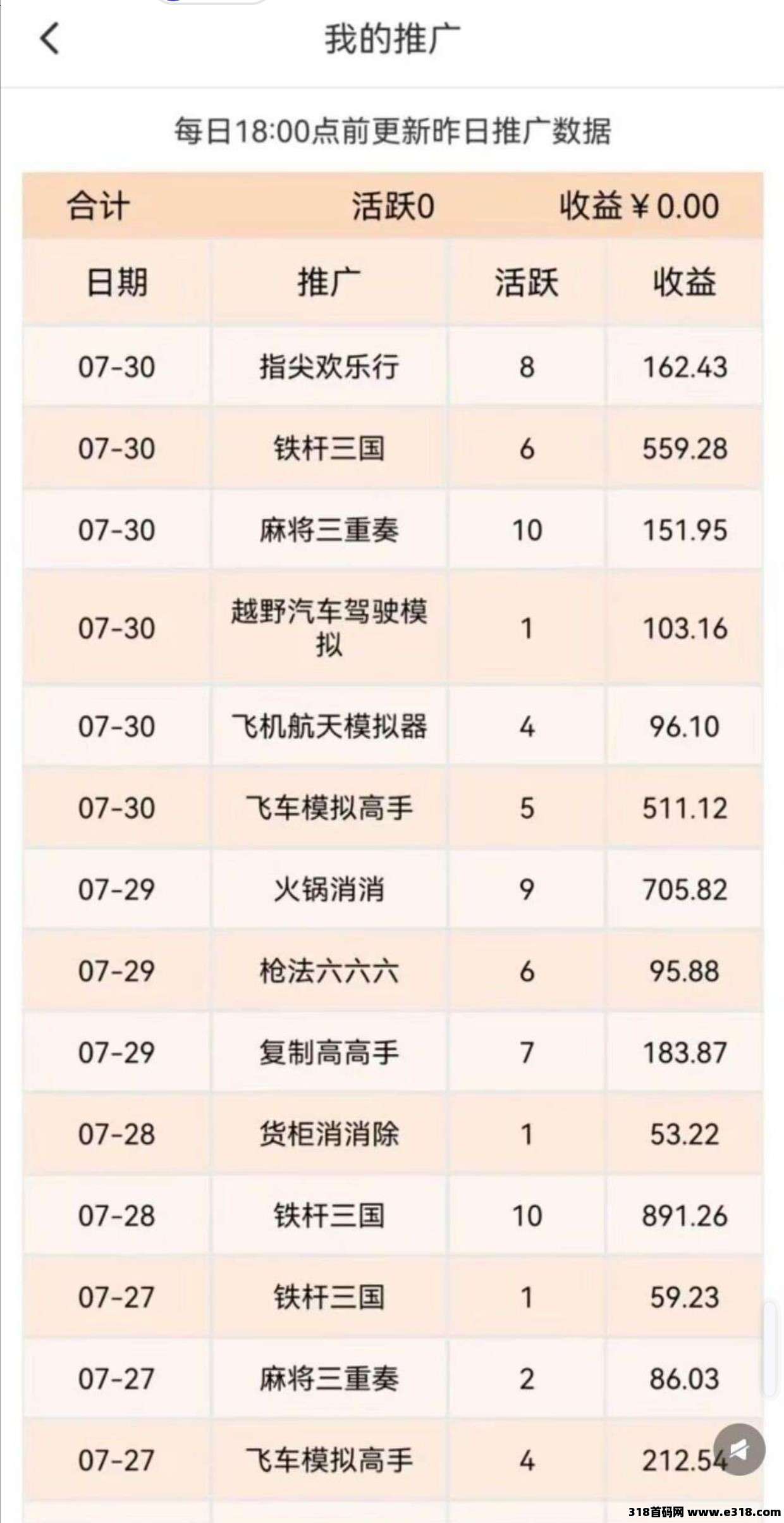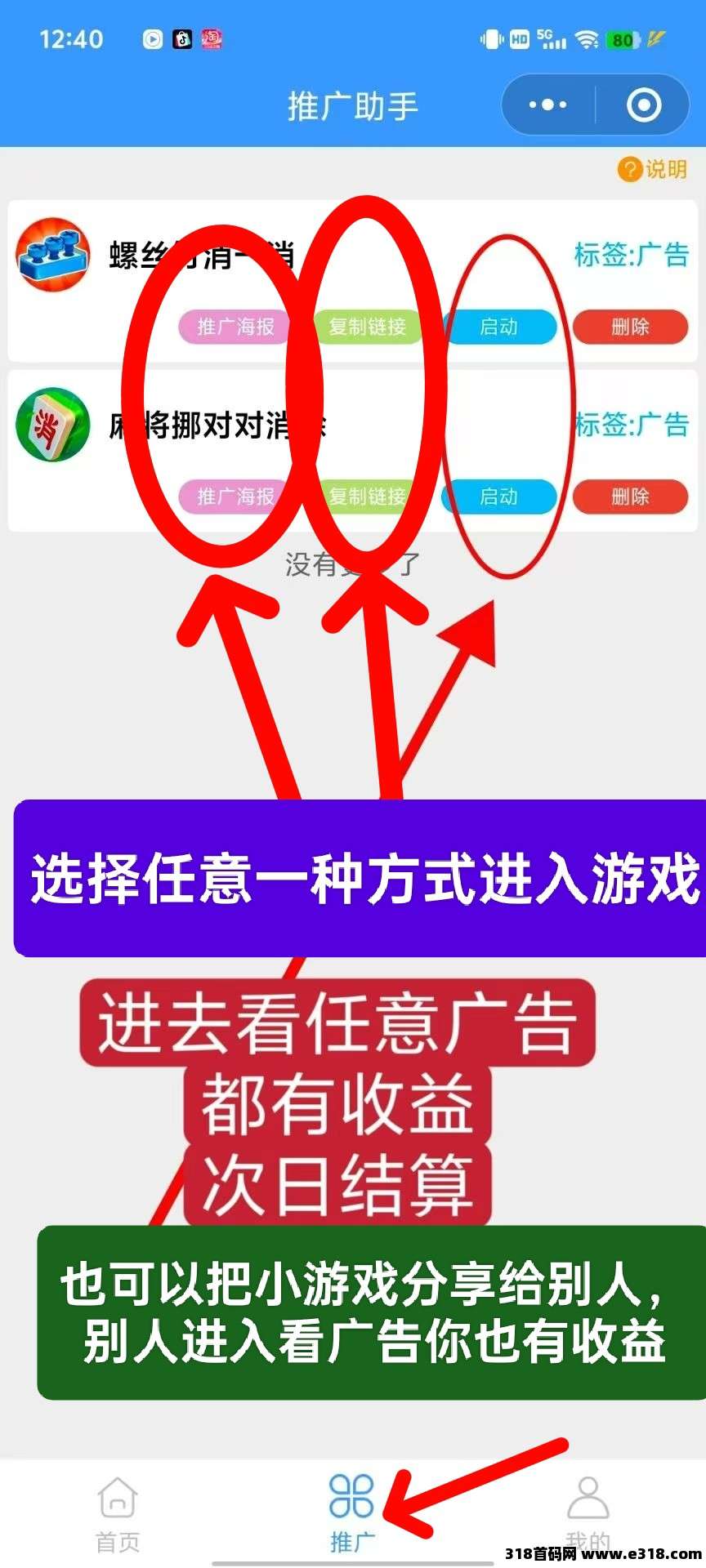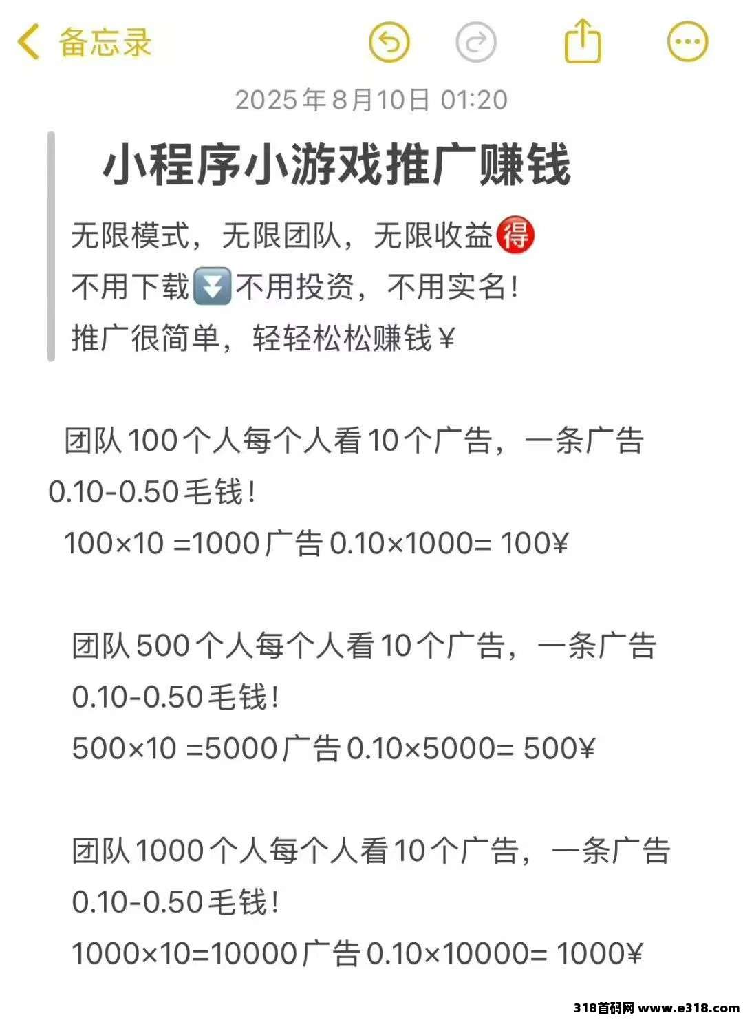 [乐玩]零撸保底收益搞,广告赚,最新模式,养机,全新微小游广告首款团长模式0撸 类似尊牛友梦联盟,