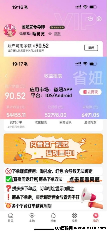 省妞的等级佣金差距较小,同行 app 上下级收益差距过大;推广其他平台的上级费尽心思拉到一名下单用户,下级因为能得到的返利很低,最终还是会跳槽使用其他自购更高的平台,结果就是竹篮打水一场空,而省妞的佣金差距没这么大,下级即使不做任务不升级,省妞初级用户就能拿到 90% 佣金,不会再跳槽到其他平台,上级提成空间小但是胜在稳定收益,长期来看收益远远超过推广其他平台。