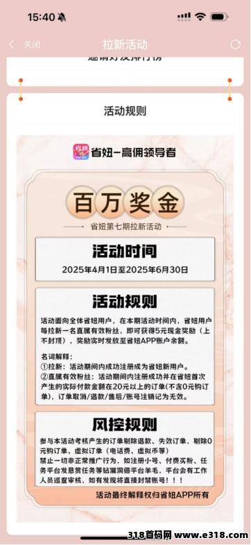 发展下级:团长可自定义邀请码 + 团队分佣 5%(**)省妞佣金高 c 端稳定发展!