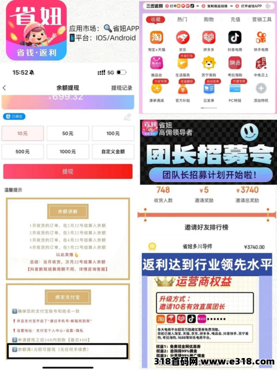 组建自己的团队赚钱。如果你觉得省妞很好用,你将他分享给好友,好友通过你的邀请码成为省妞的用户,那么以后好友每次消费的时候你都会得到一笔佣金,假如你的好友同时也用省妞分享商品赚钱,那么在他源源不断的收佣金的时候,你也在源源不断的获取佣金,所谓是双赢的局面,配合拉新奖励!如果你团队的人越多,那么你这个收入管道的收益也就会越来越多。