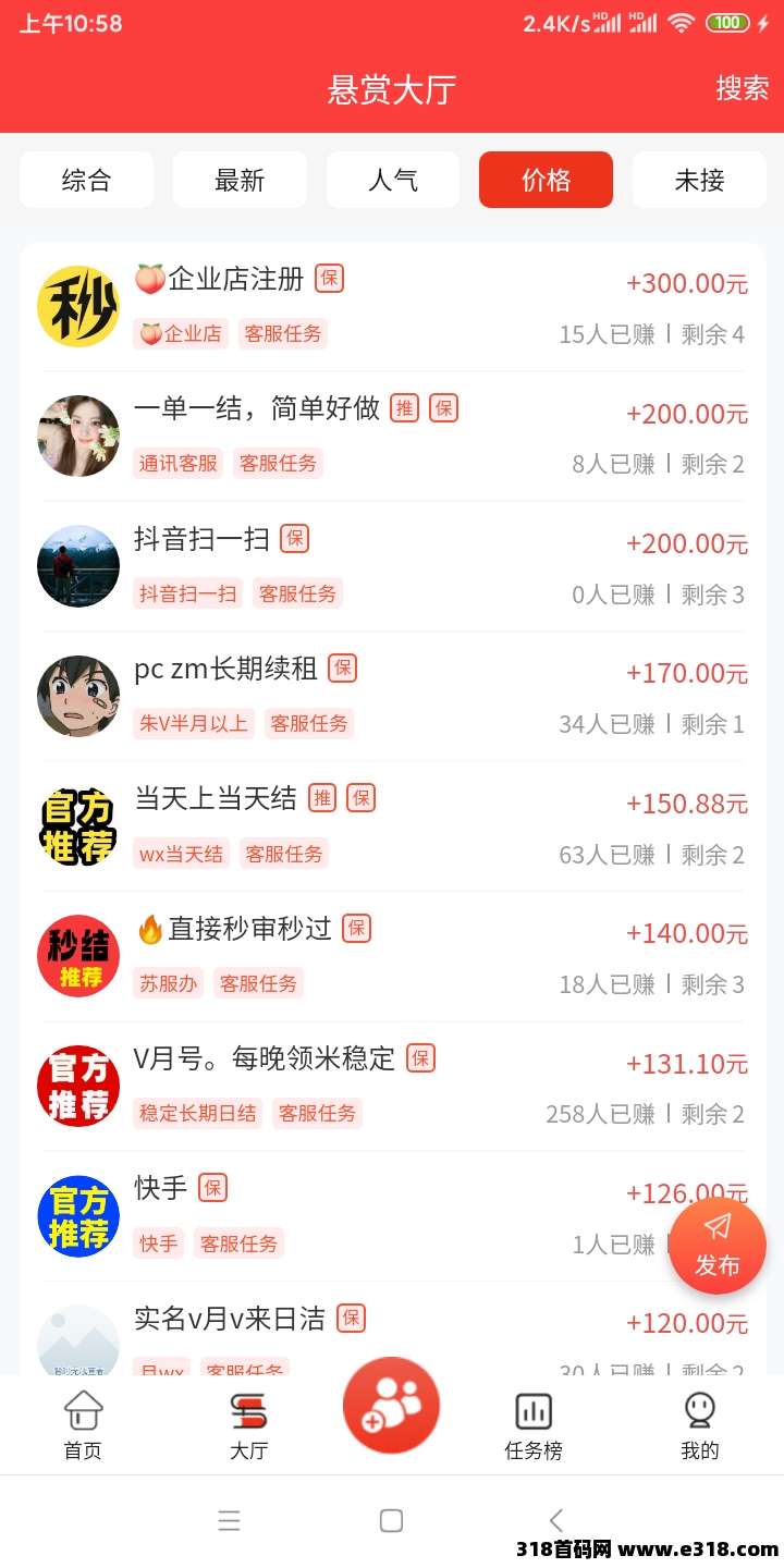 里面有好多代发任务和客服任务,单架高几十以上,