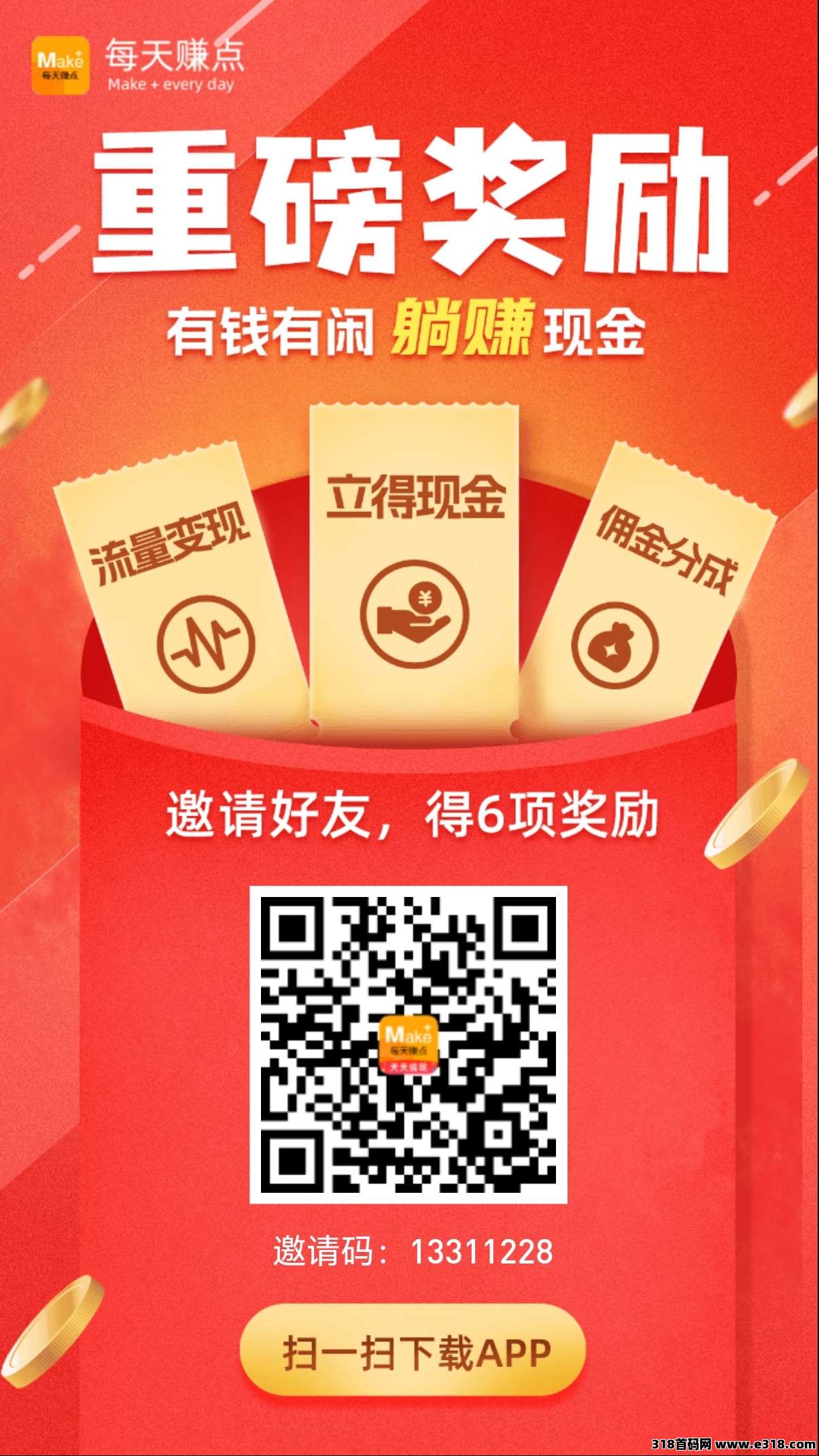 每天赚点,一款帮你赚钱的APP,每天一分钟?,赚钱好轻松,登陆后填我的邀请码【13311228】赚钱,一元提现秒到账