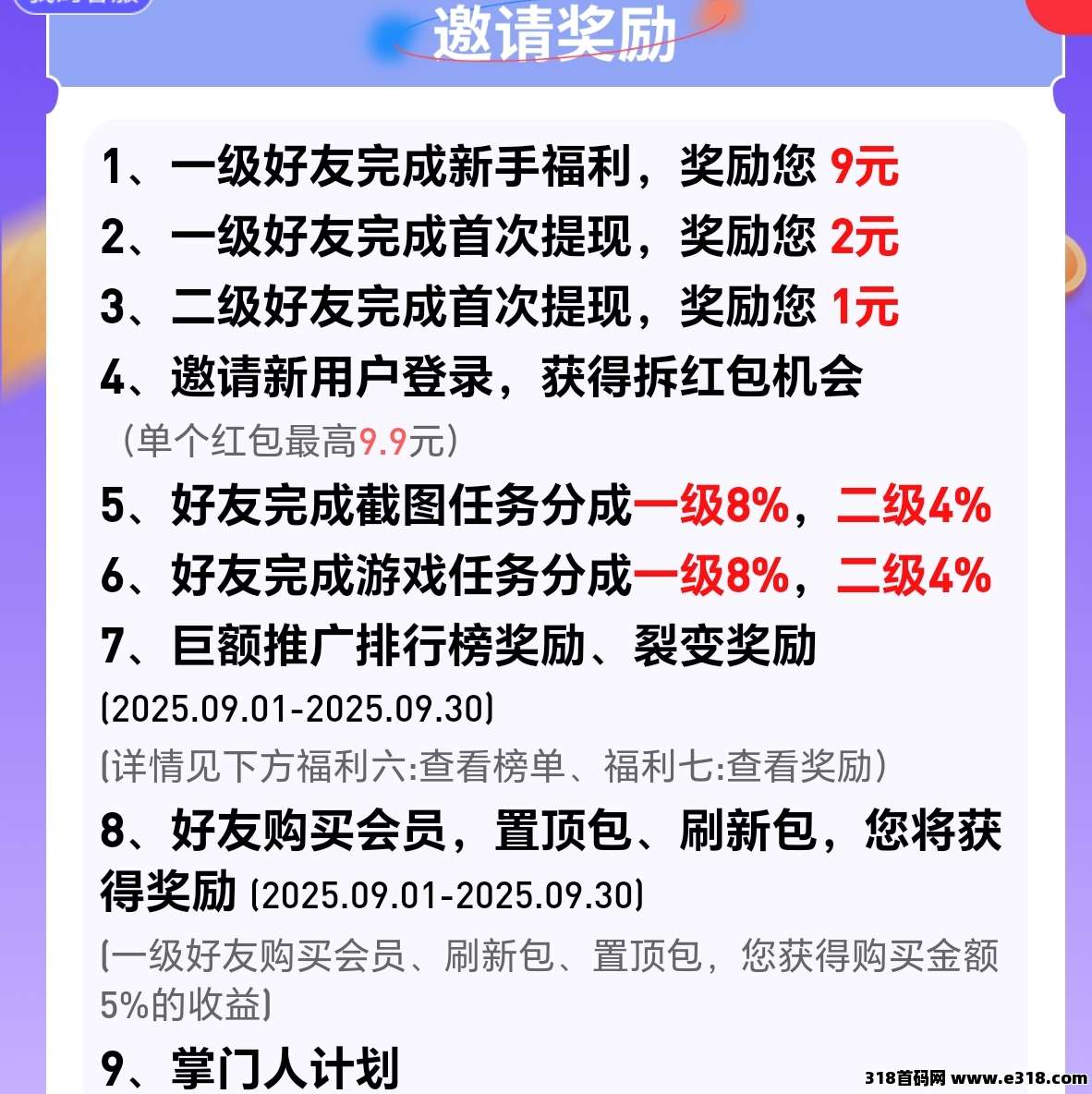 六、您的一级好友在活动期间(2025.09.01-2025.09.30)购买会员,刷新包、置顶包您拿对应购买金额的5%的分成奖励。