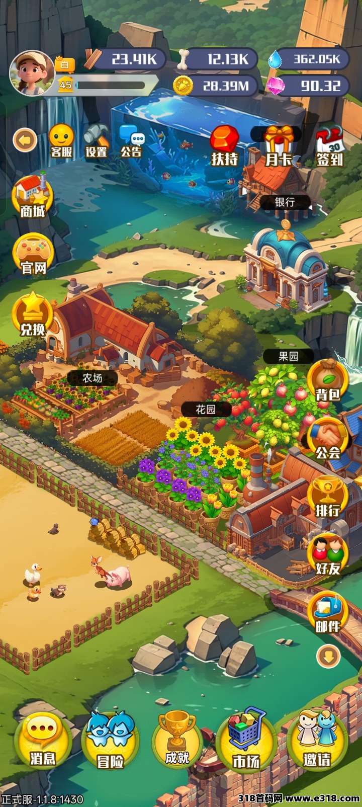 体验田园生活,边玩边赚!农场、牧场、花园,果园,鱼塘…成熟的作物和动物产出各种材料和金币,加工厂加工在市场变现 。平台保底回收。