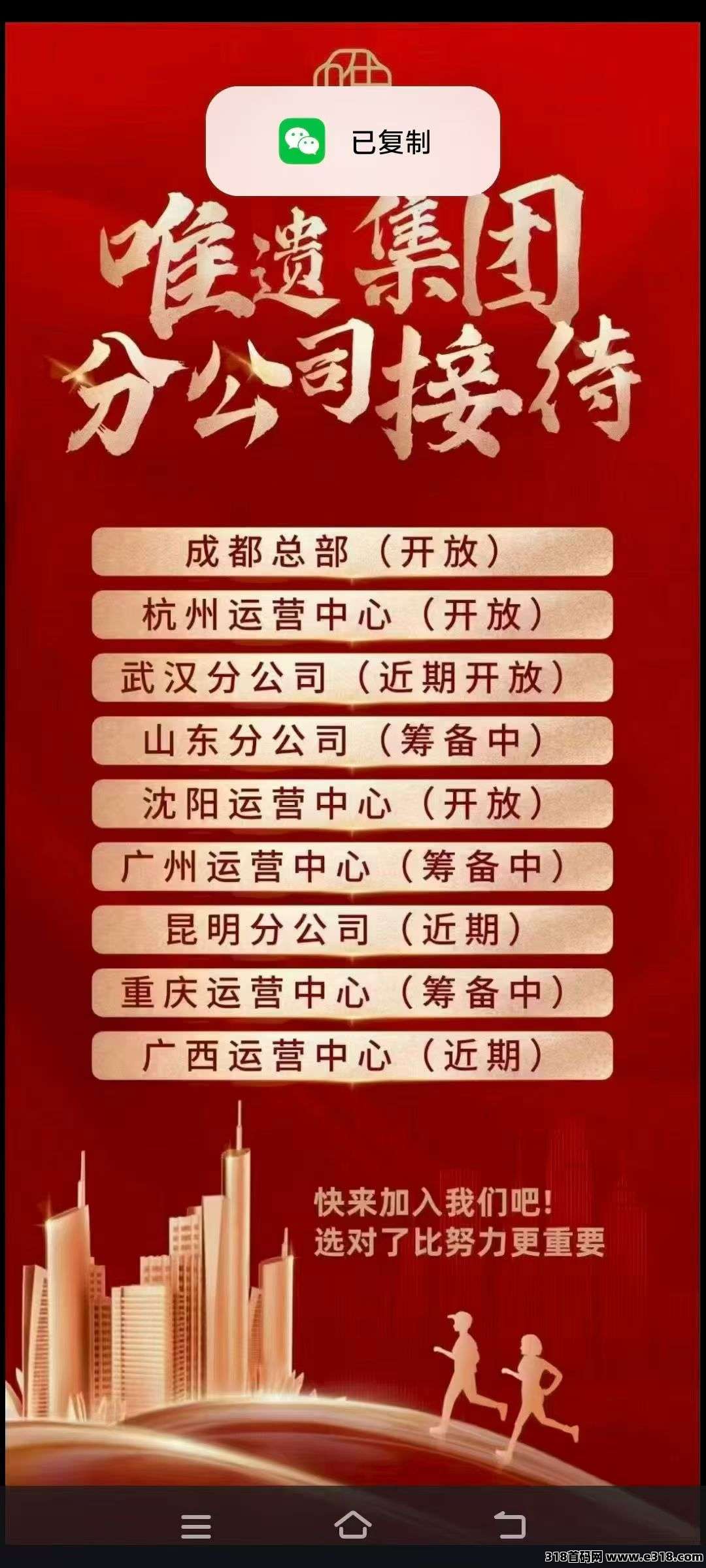 | 免责声明:合作之前建议签订合同,318首码网作为信息共享平台无法对信息的真实性及准确性做出判断,不承担任何财产损失和法律责任,若您不同意该提示,请关闭网页且不要在本站拓展任何合作,否则造成的任何损失由您个人承担。 | |
