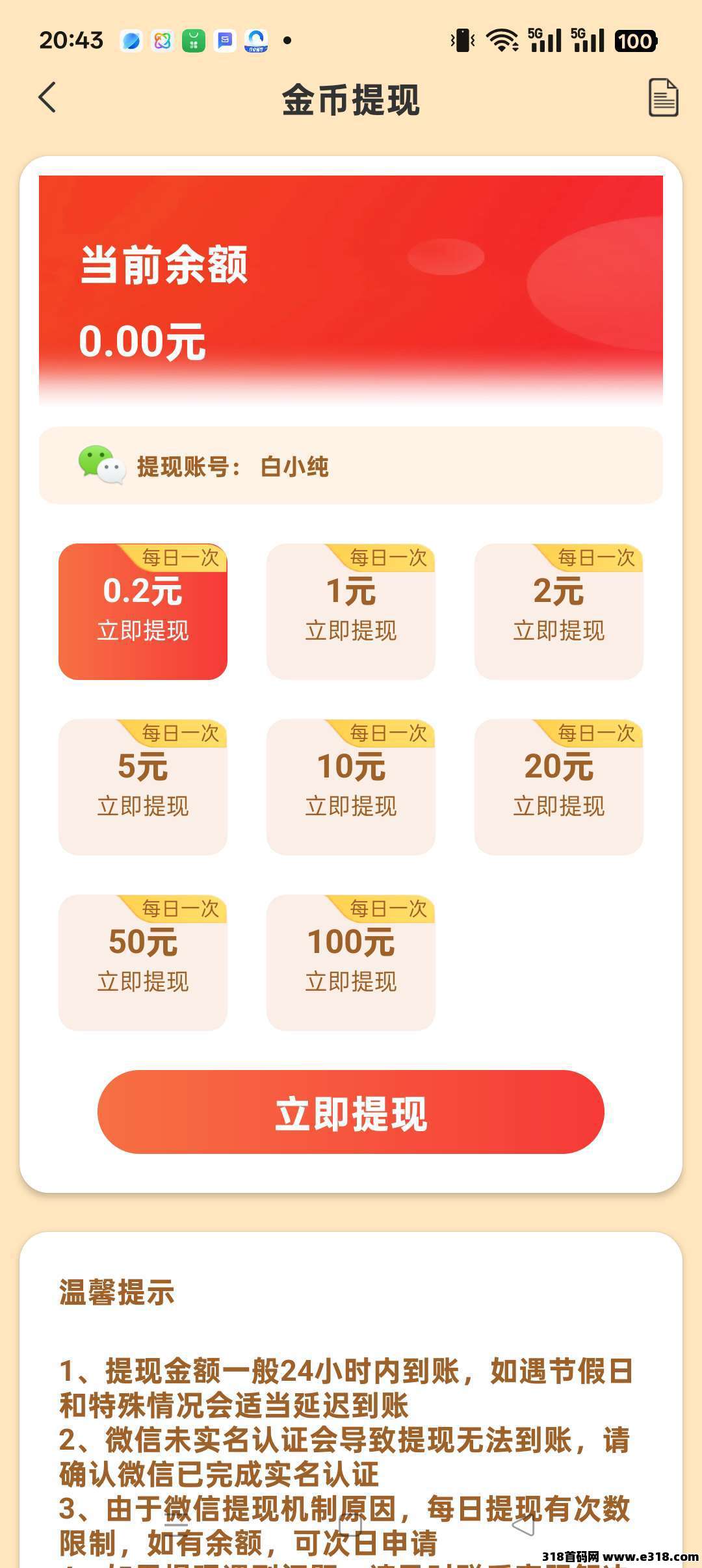 满1米提现,无门槛提现