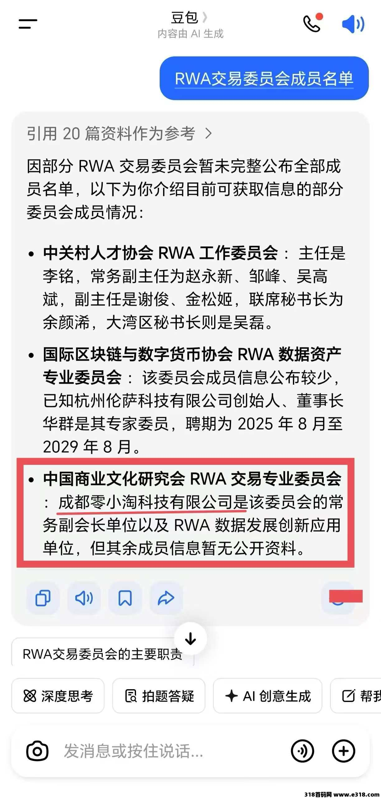 背景实力可查可做股权穿透,这种实力超过99%的项目,项目刚开始大量招收团队长,10.18号召开两千人启动大会,届时会有部委级领导以及分管RWA委员会的领导到场站台!