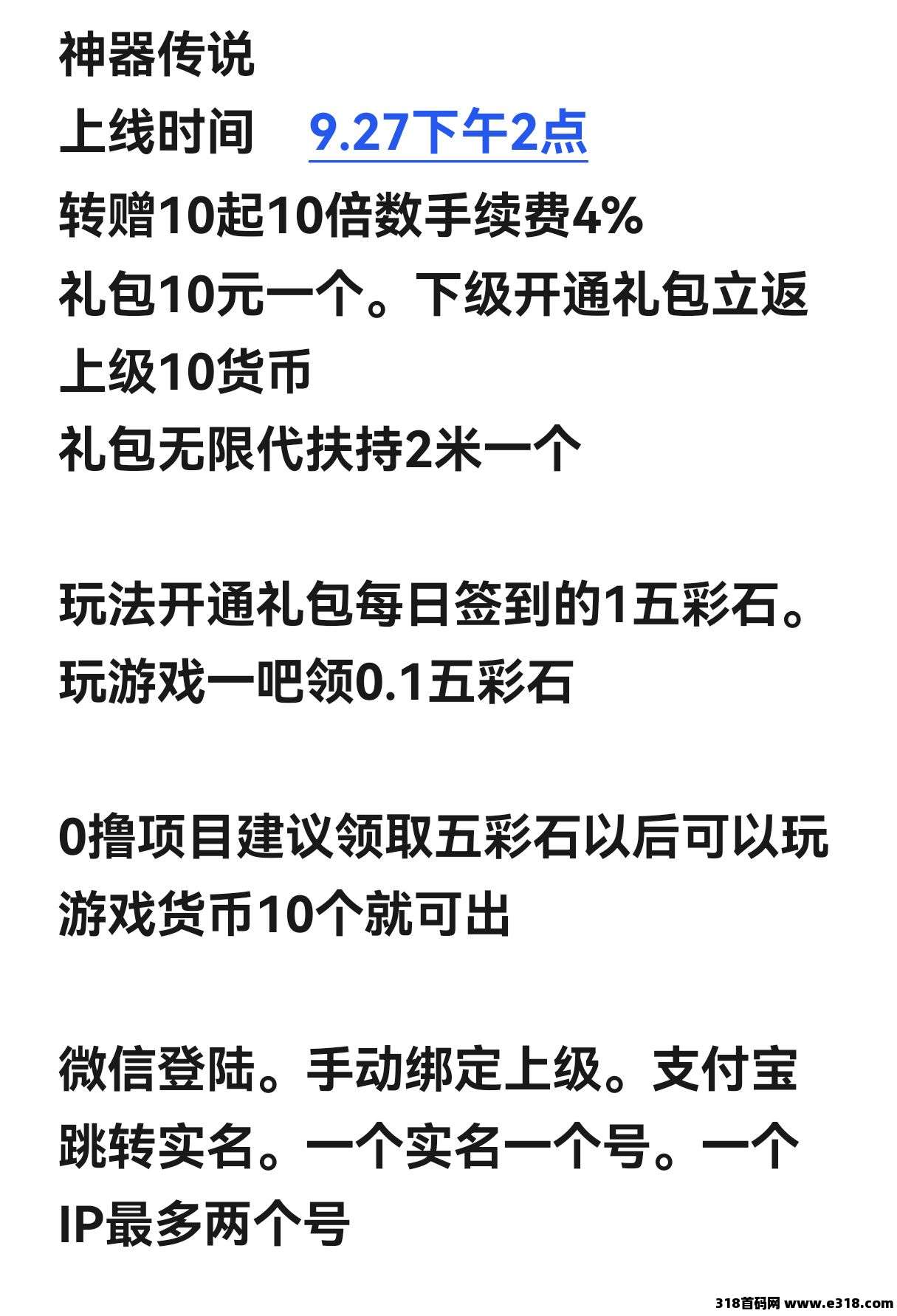 神器传说点上线,我直推全部免丹上车,10米的卡,**复尺2米,绑定上级ID60234