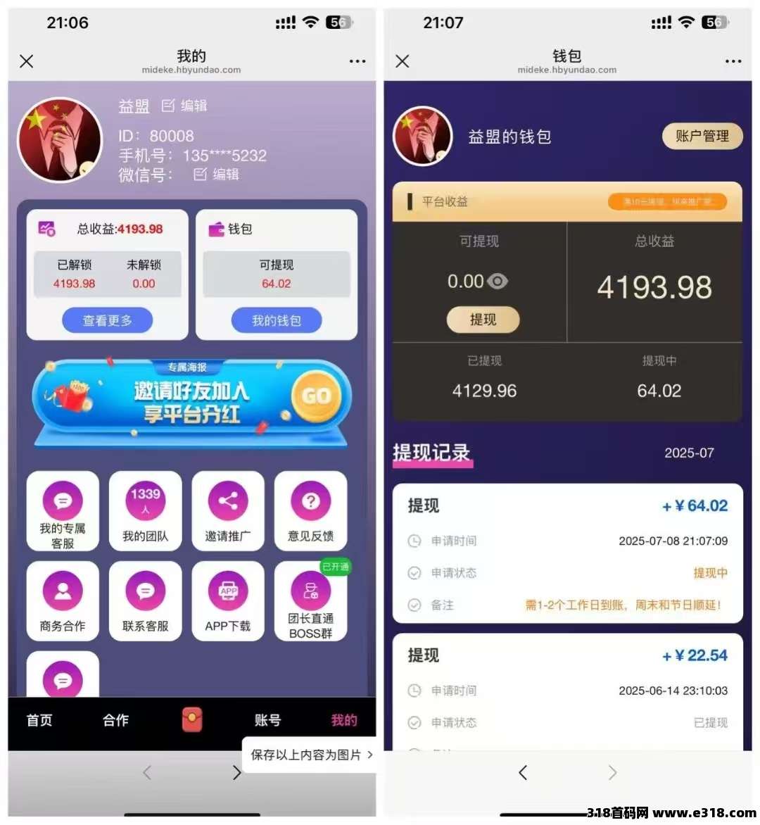 提取收益:当账户余额达到10元时,用户可以申请提取收益,平台支持快速到账