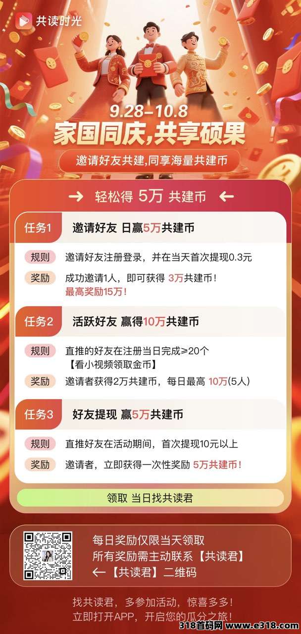 国庆福利来了1-8号,共建币,福利金币赠送,共创分发放