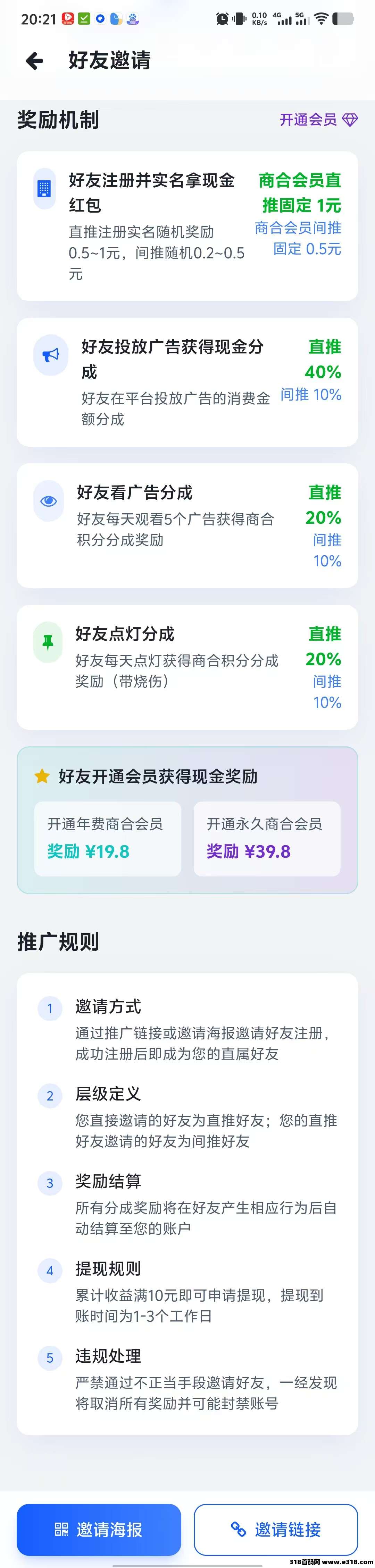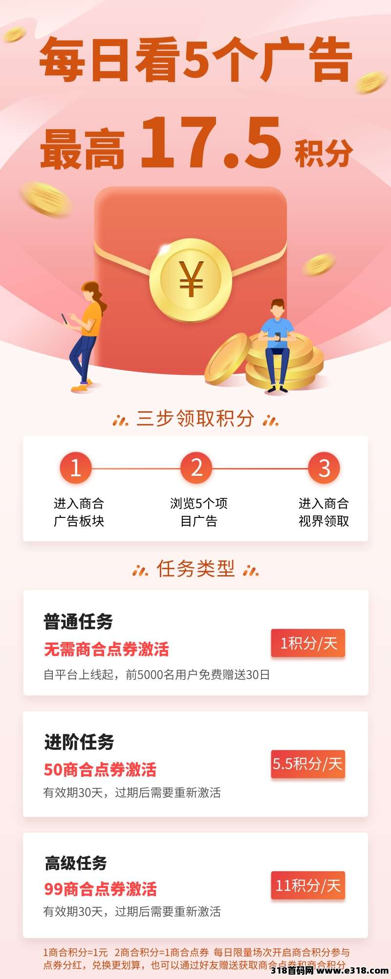 商合是一款广告投流+点券+点灯+股权**+精英上星级的创新玩法